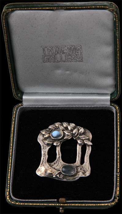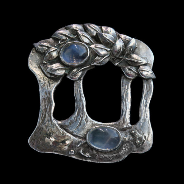 Brooch depicting a Woodland Arbour with moonstones mirroring the reflection of the moon at night.