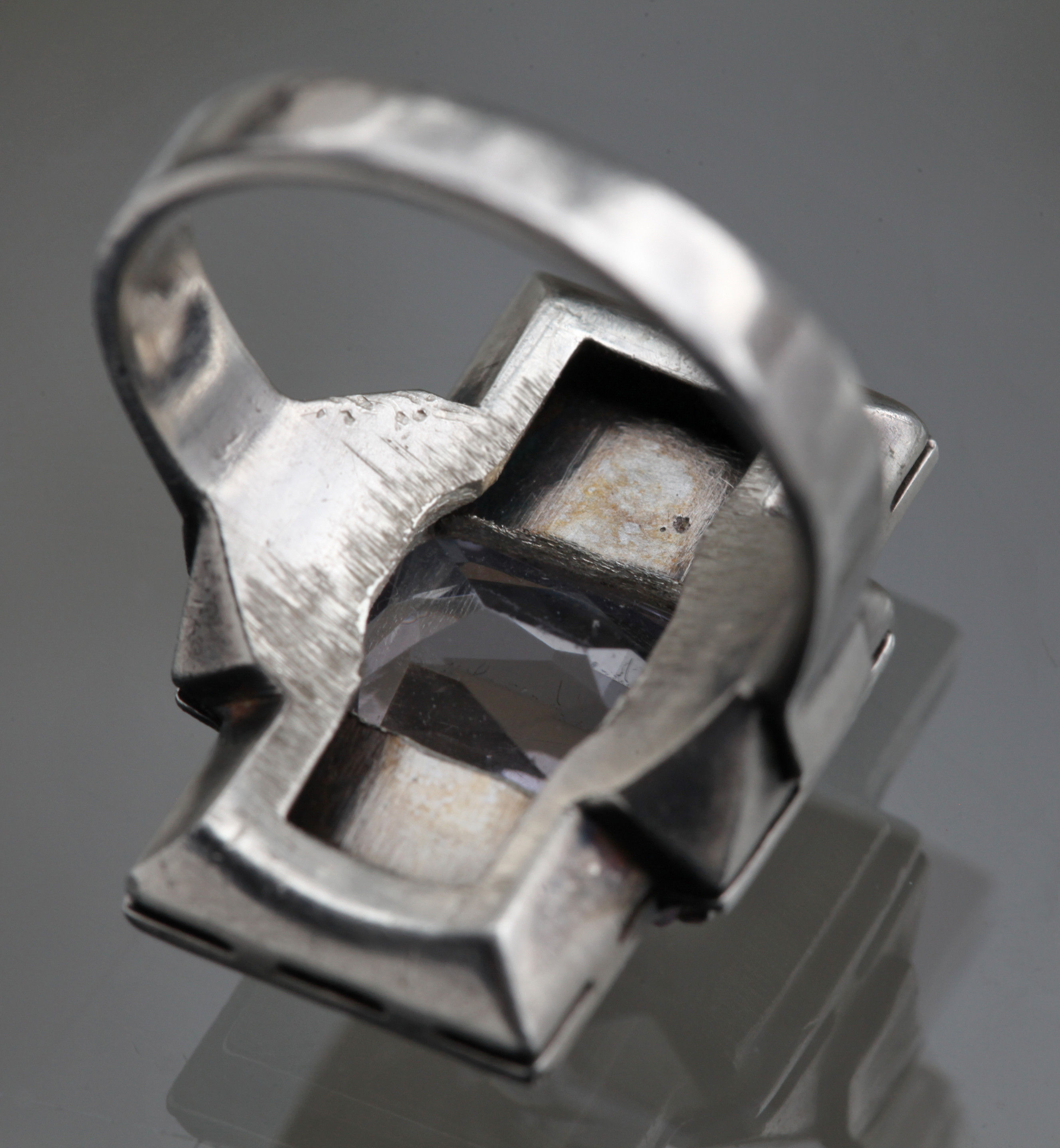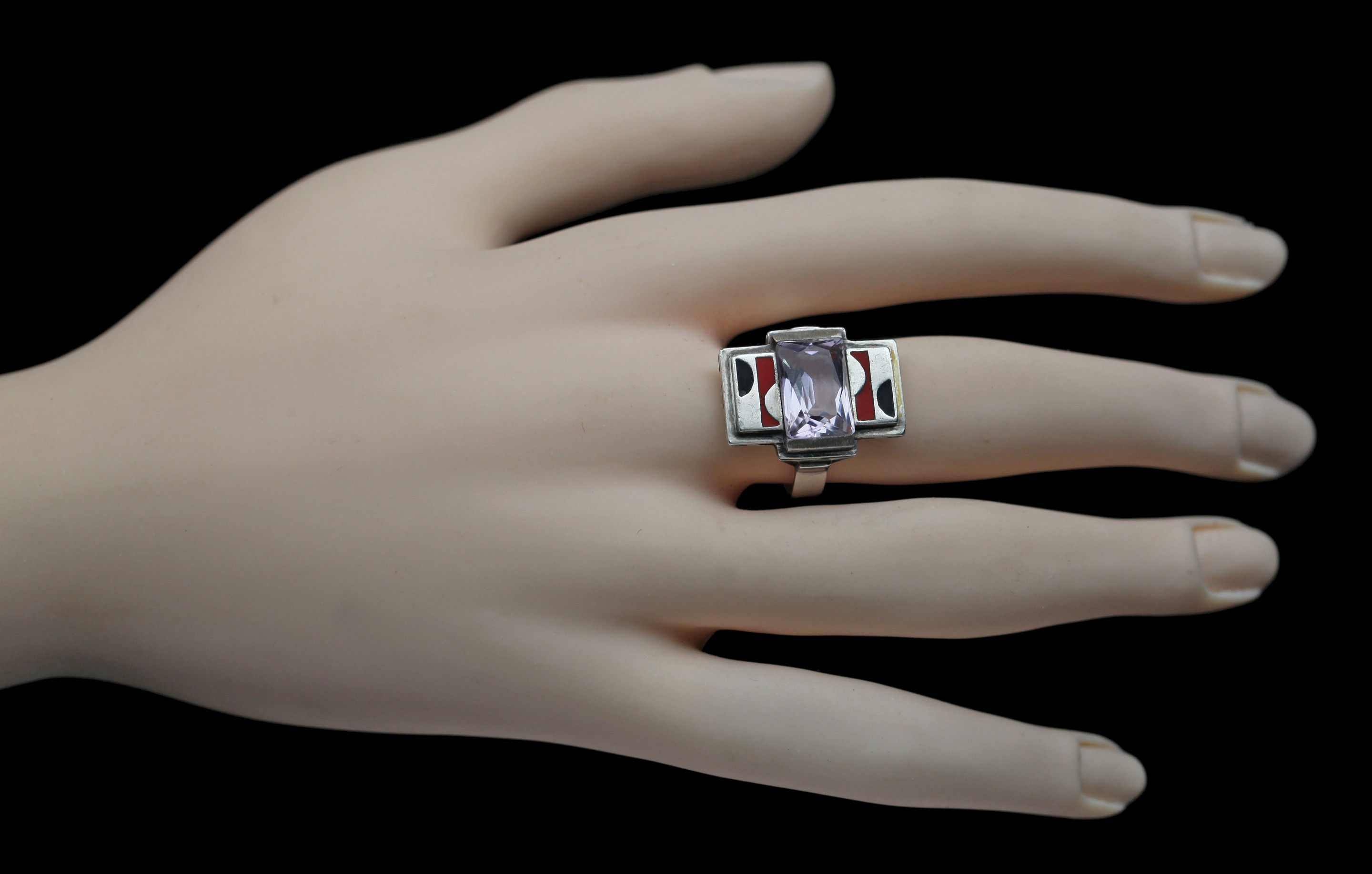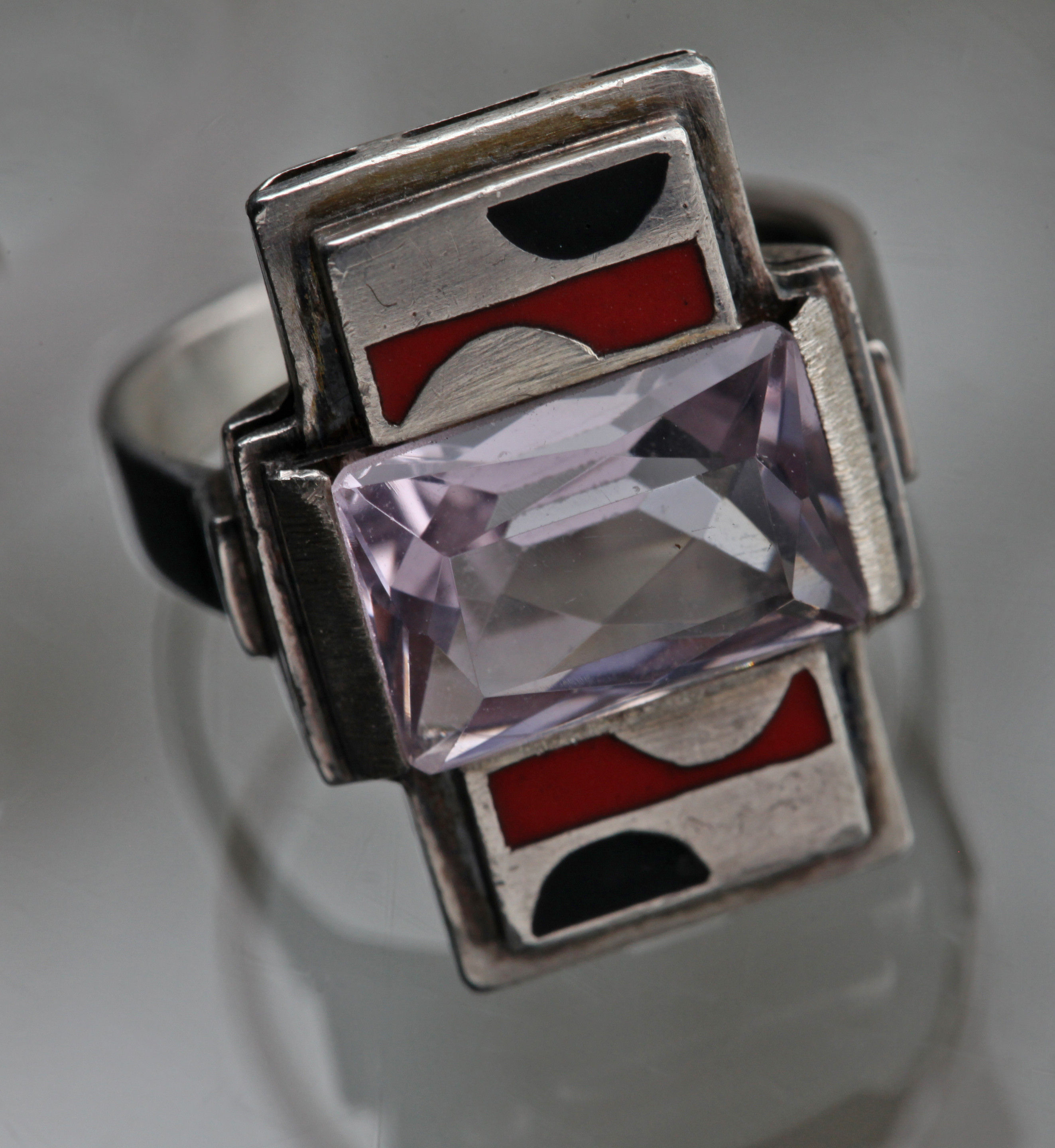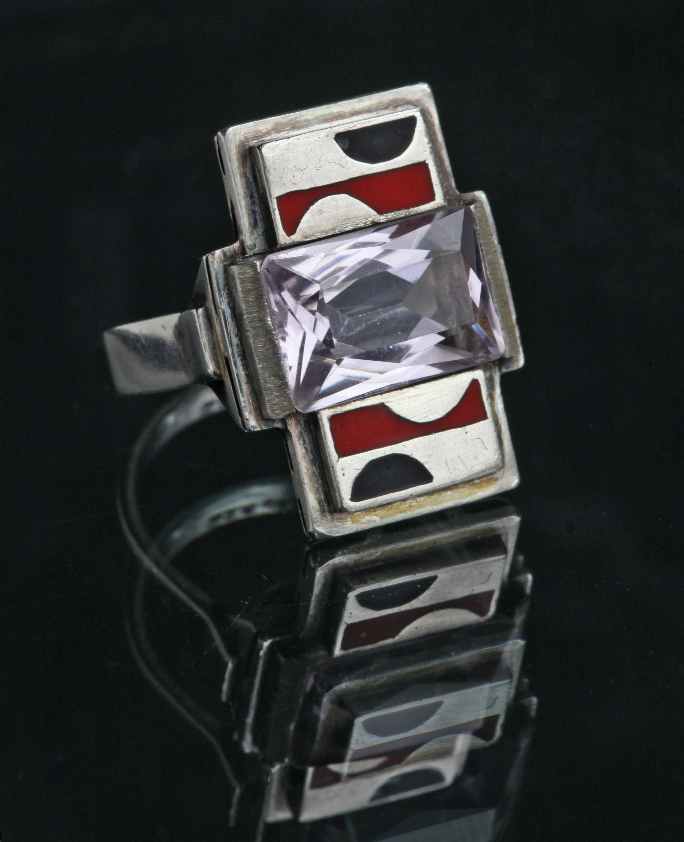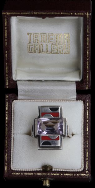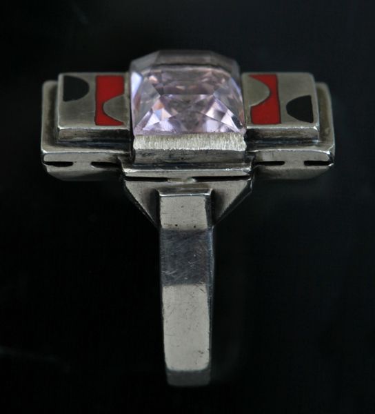 A very successful Art Deco ring that is so of its time it could have come from the workshop of Jean Despres. It's modernist appeal is undeniable even iconic.