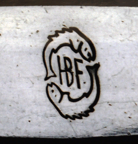 | Marks | Her interlocked initials 'HBF'are flanked by fish swimming in a clockwise oval |