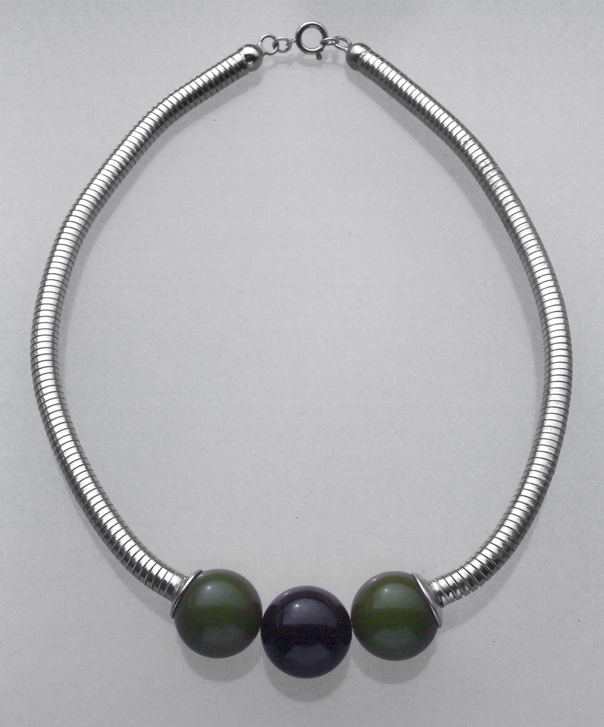 A very smart Art Deco necklace in olive green & black attributed to Jakob Bengel