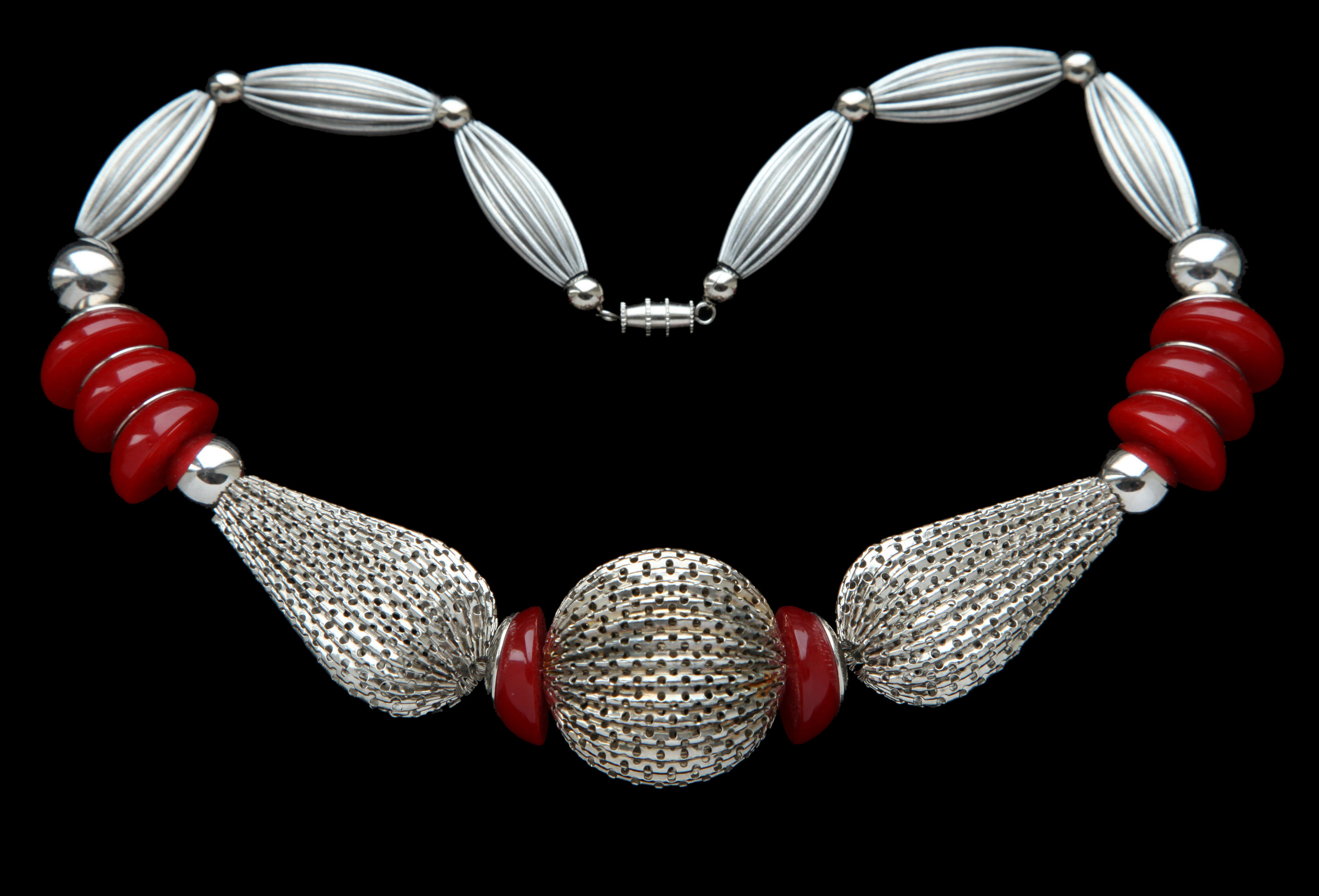 An Art Deco Necklace in chrome & galalith attributed to Jakob Bengel