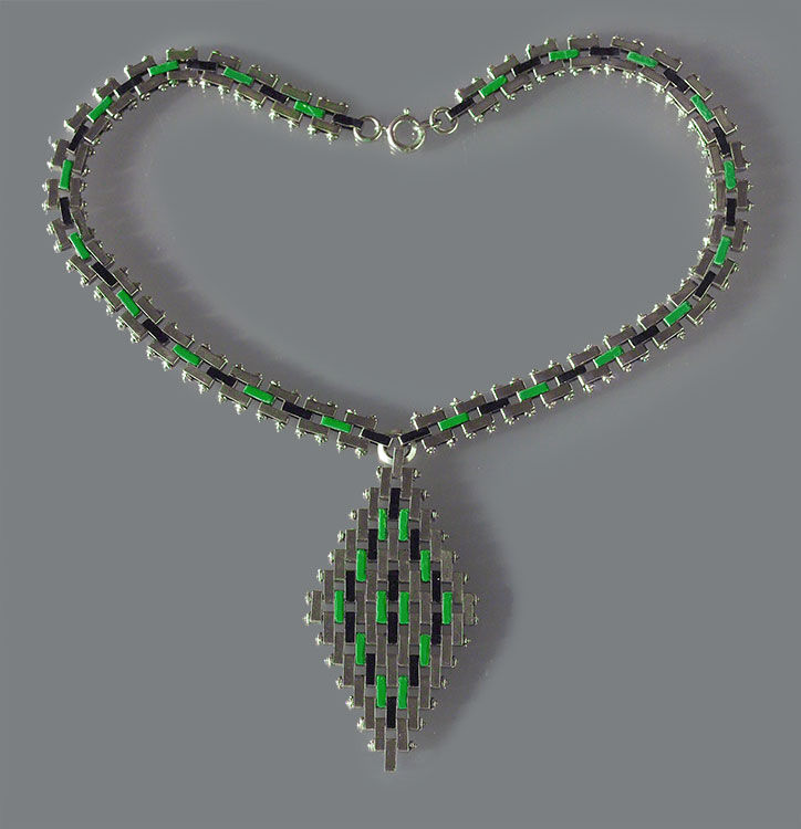 An Art Deco green & black lacquered brickwork necklace by Jakob Bengel.