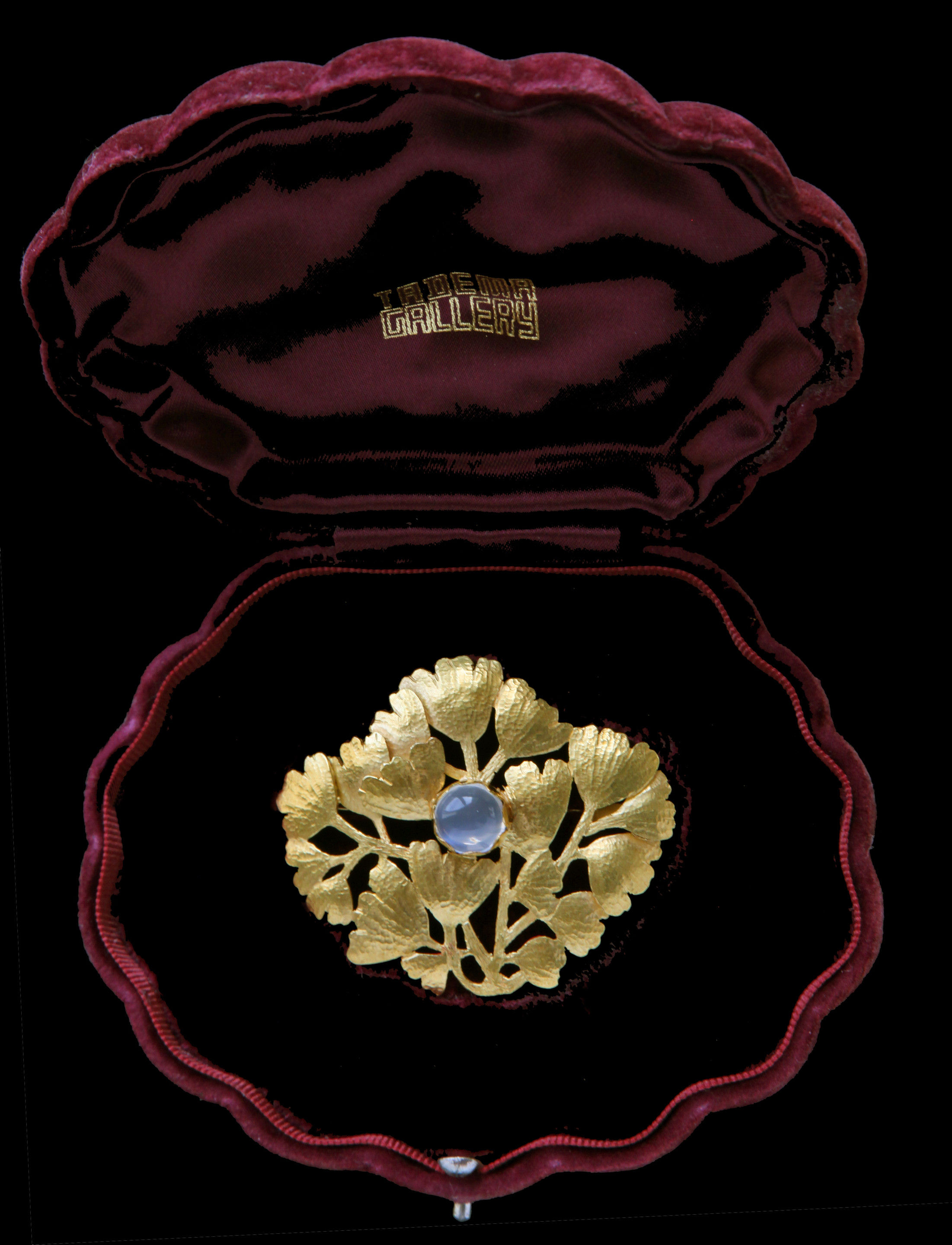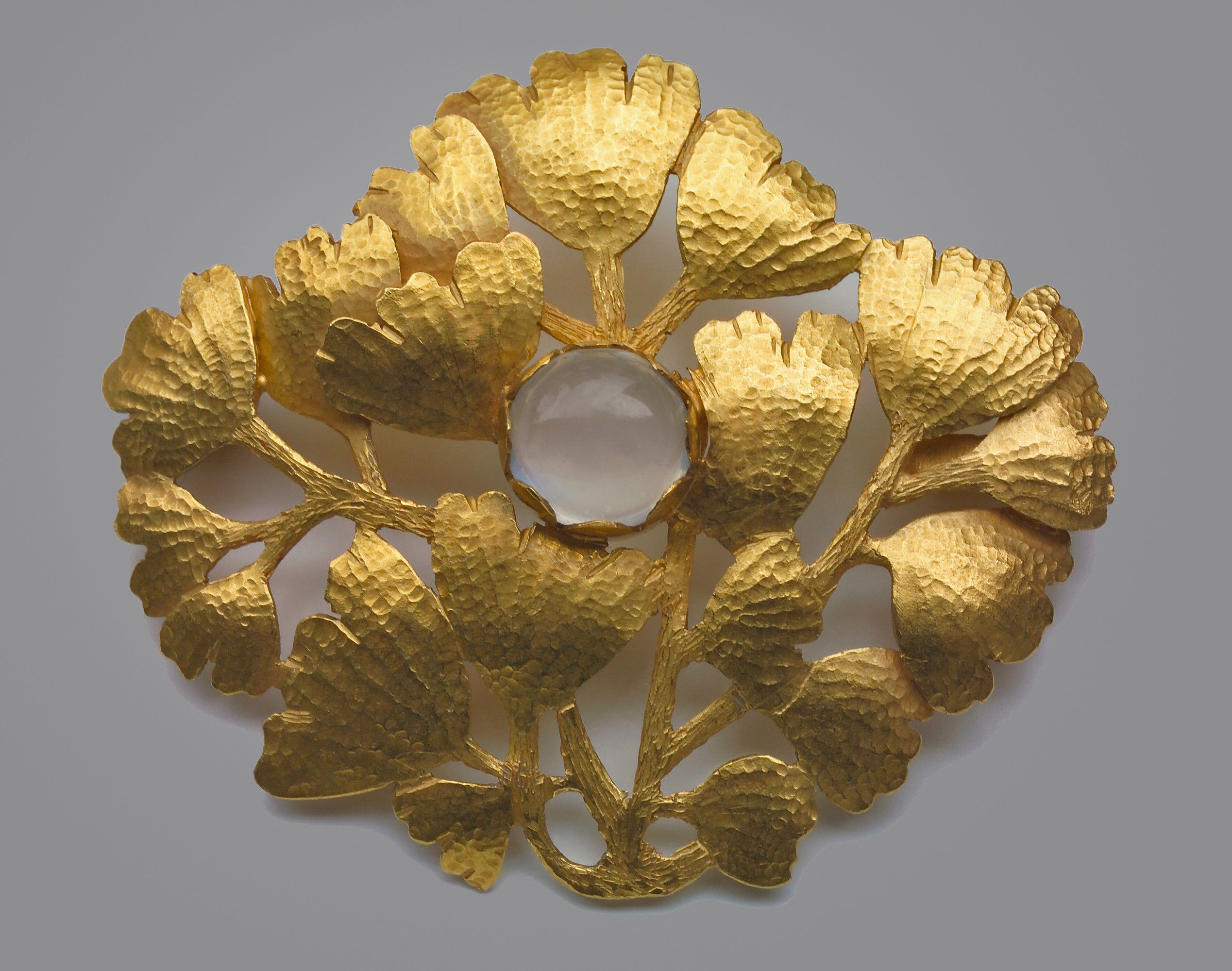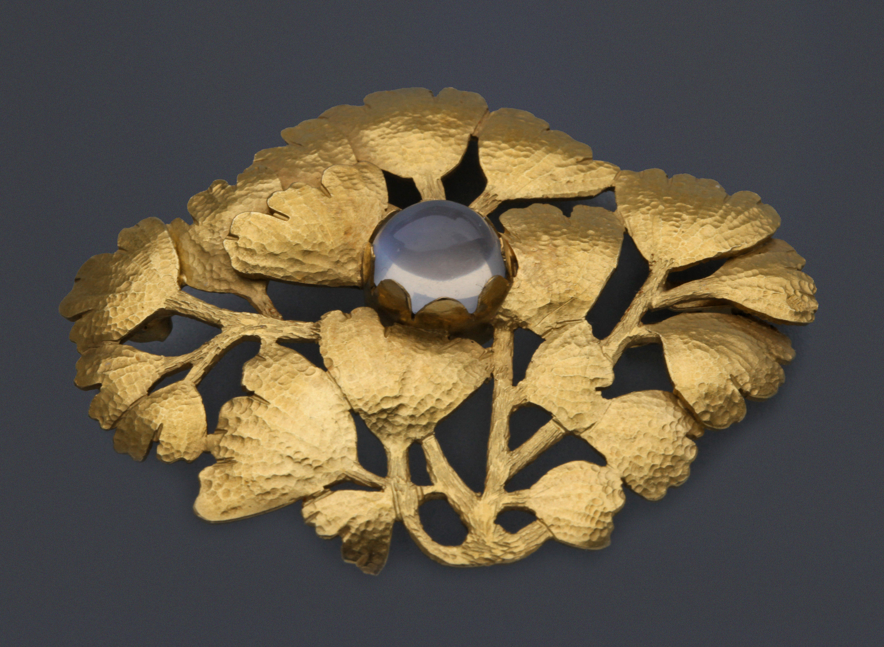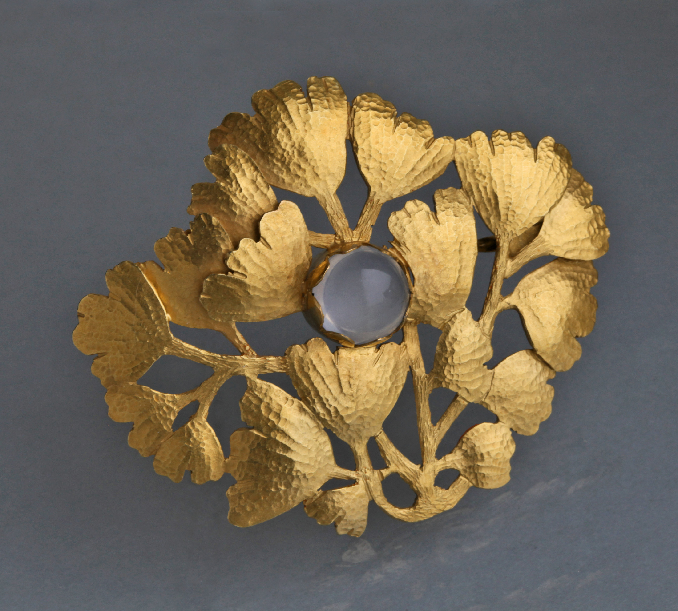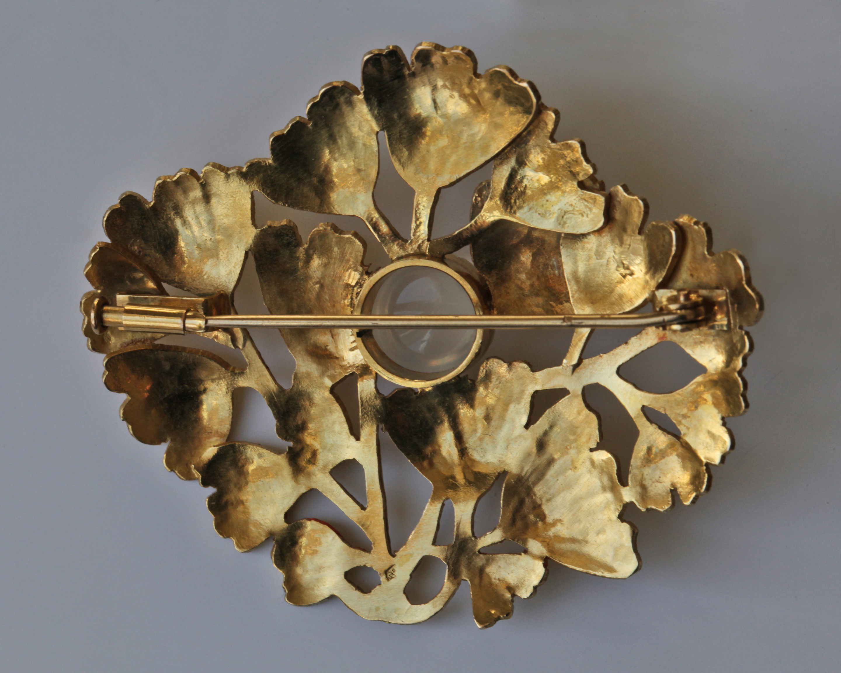 The golden Gingko fern in this impressive & beautiful brooch has the refreshing naturalism that Japonisme introduced to Western jewelry of this period