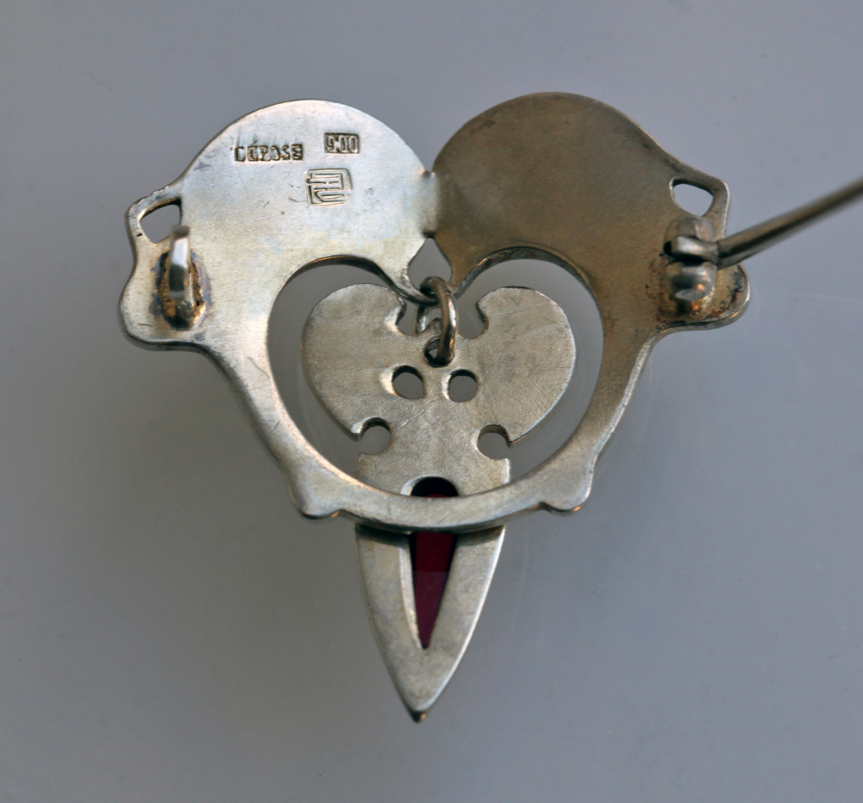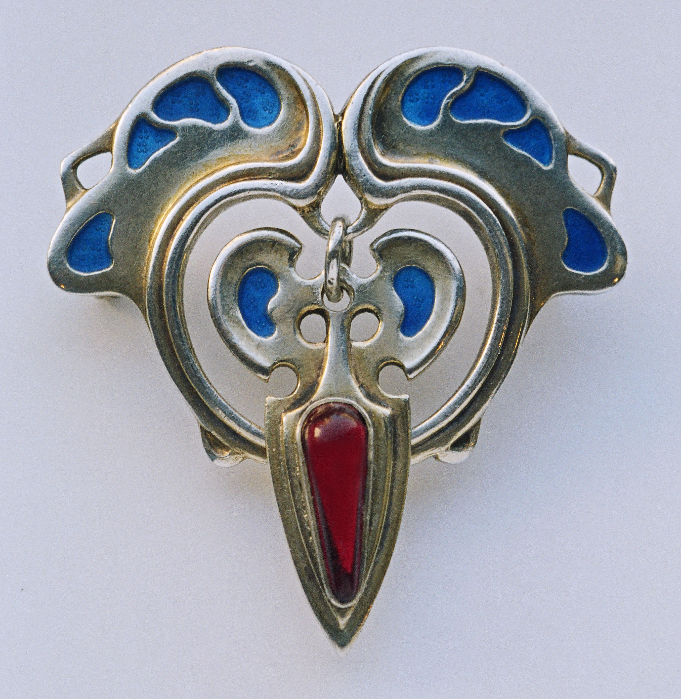 The swiveling garnet & enamel drop gives a lively feel to this unusual Jugendstil brooch.