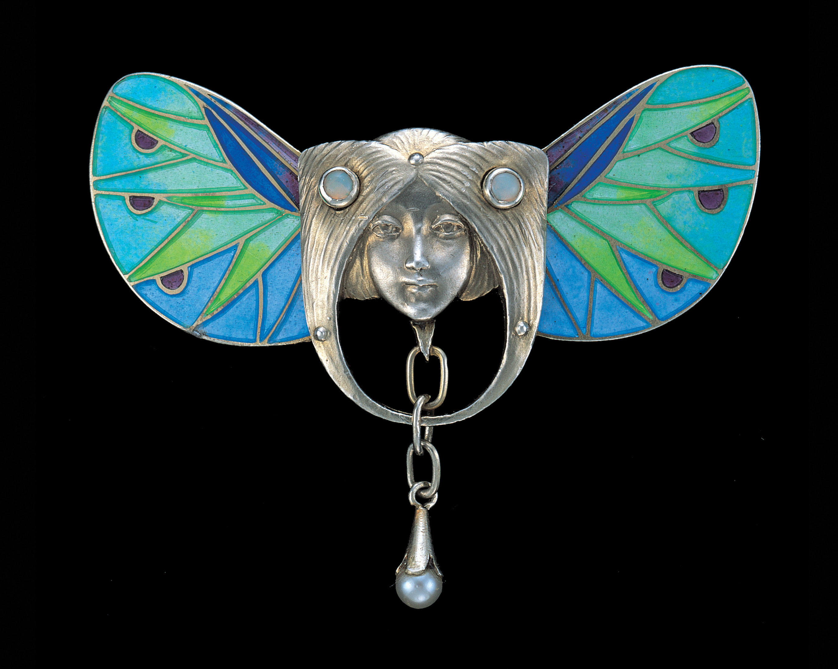 Partly gilt silver, enamel, opals, pearl