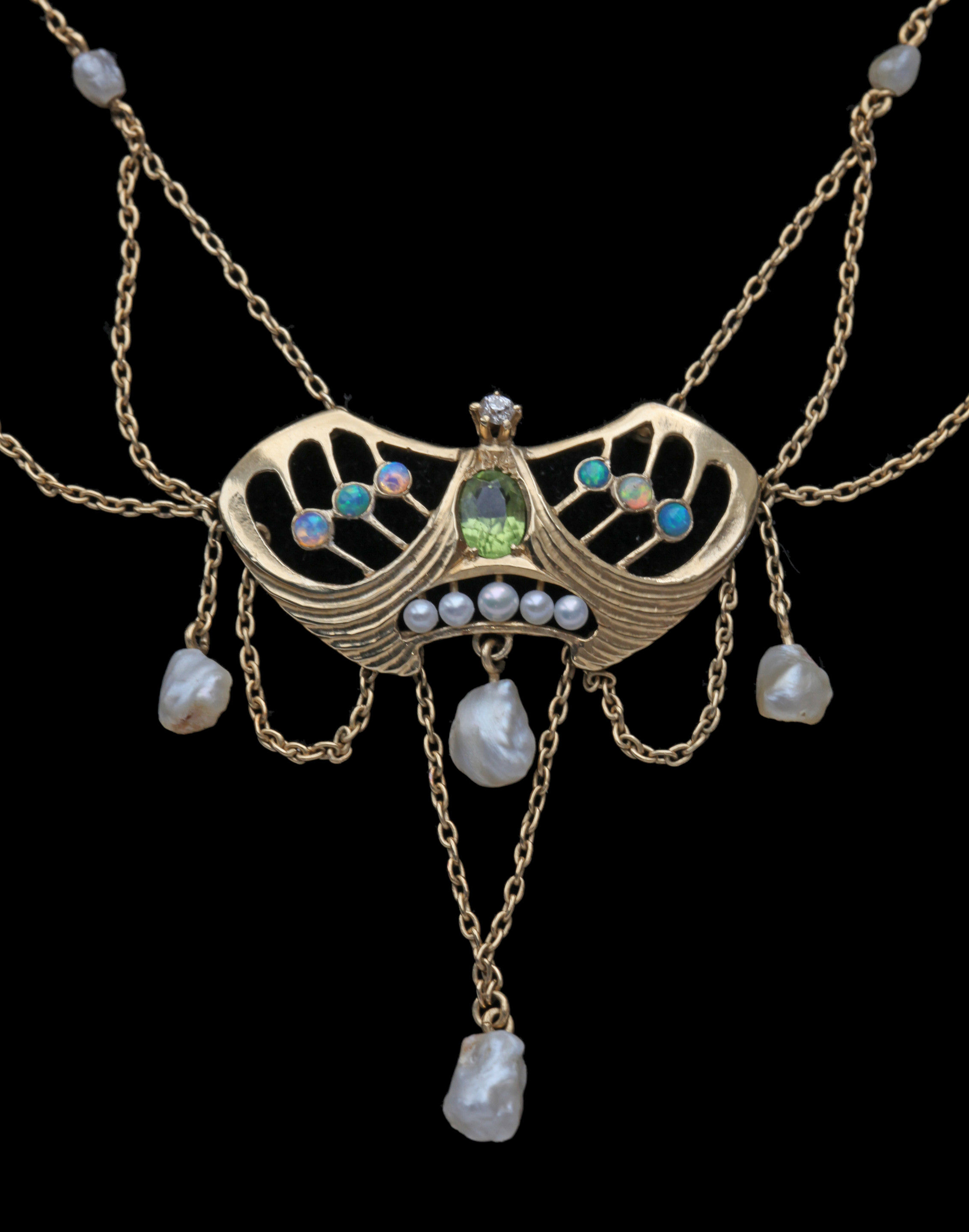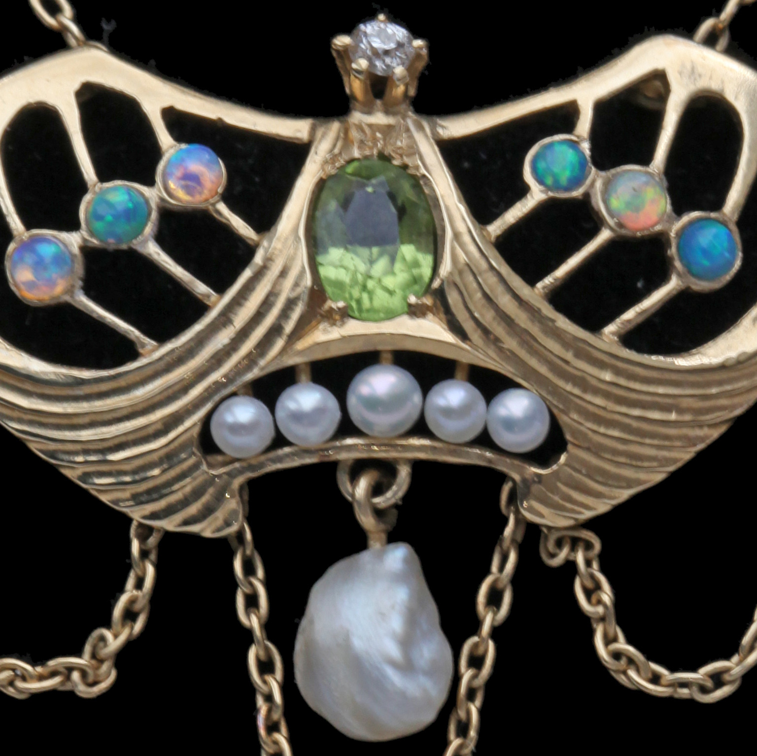 Gold, peridot, opal, pearl & diamond
