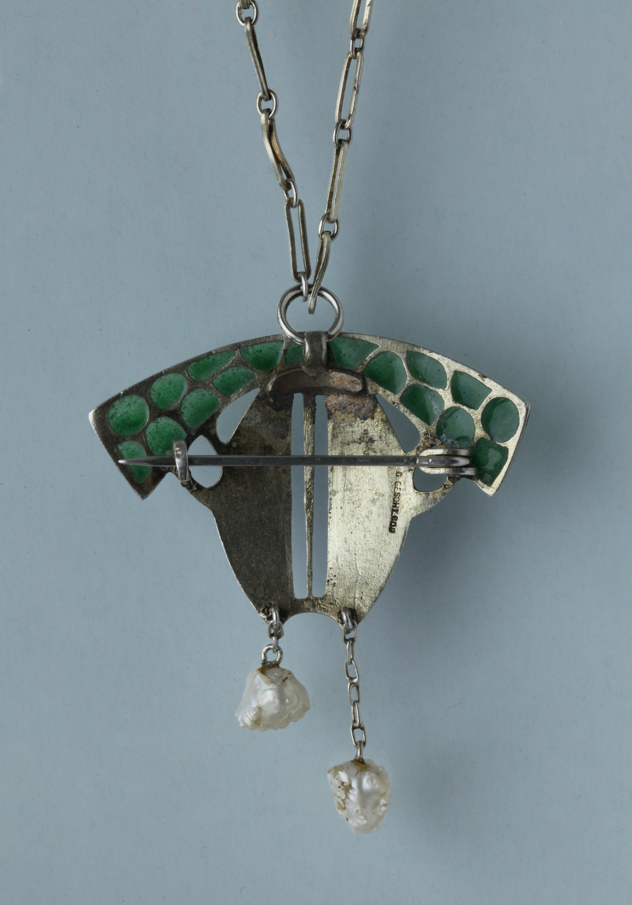 Silver, plique-à-jour enamel & pearl