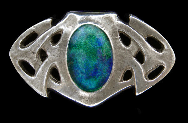 A silver & enamel Liberty & Co brooch designed by Archibald Knox