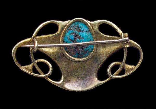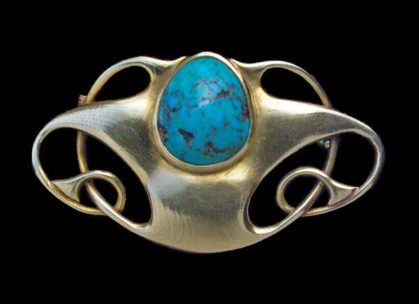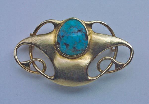 A Liberty & co gold & turquoise brooch designed by Archibald Knox