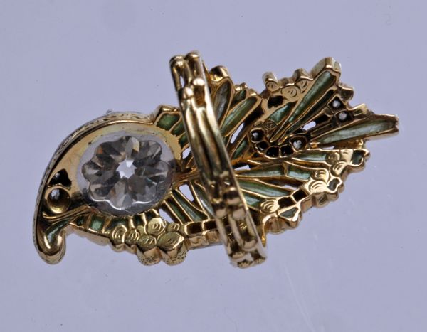 A superb example of the finest Parisian jewelers art from the 1900's in gold, plique-à-jour enamel & diamond.
