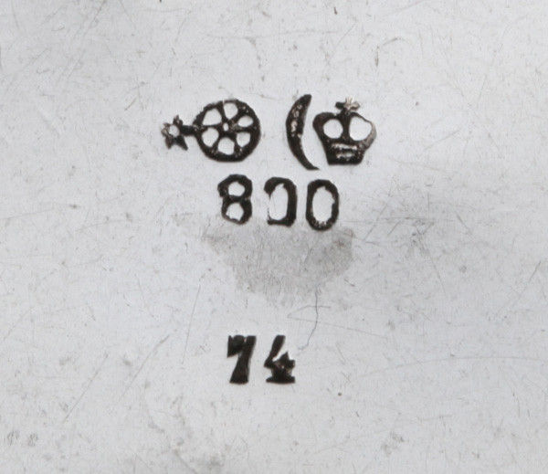 | Marks | 'Moon & Crown' '800' & maker's mark of wheel & star. Numbered 74 |