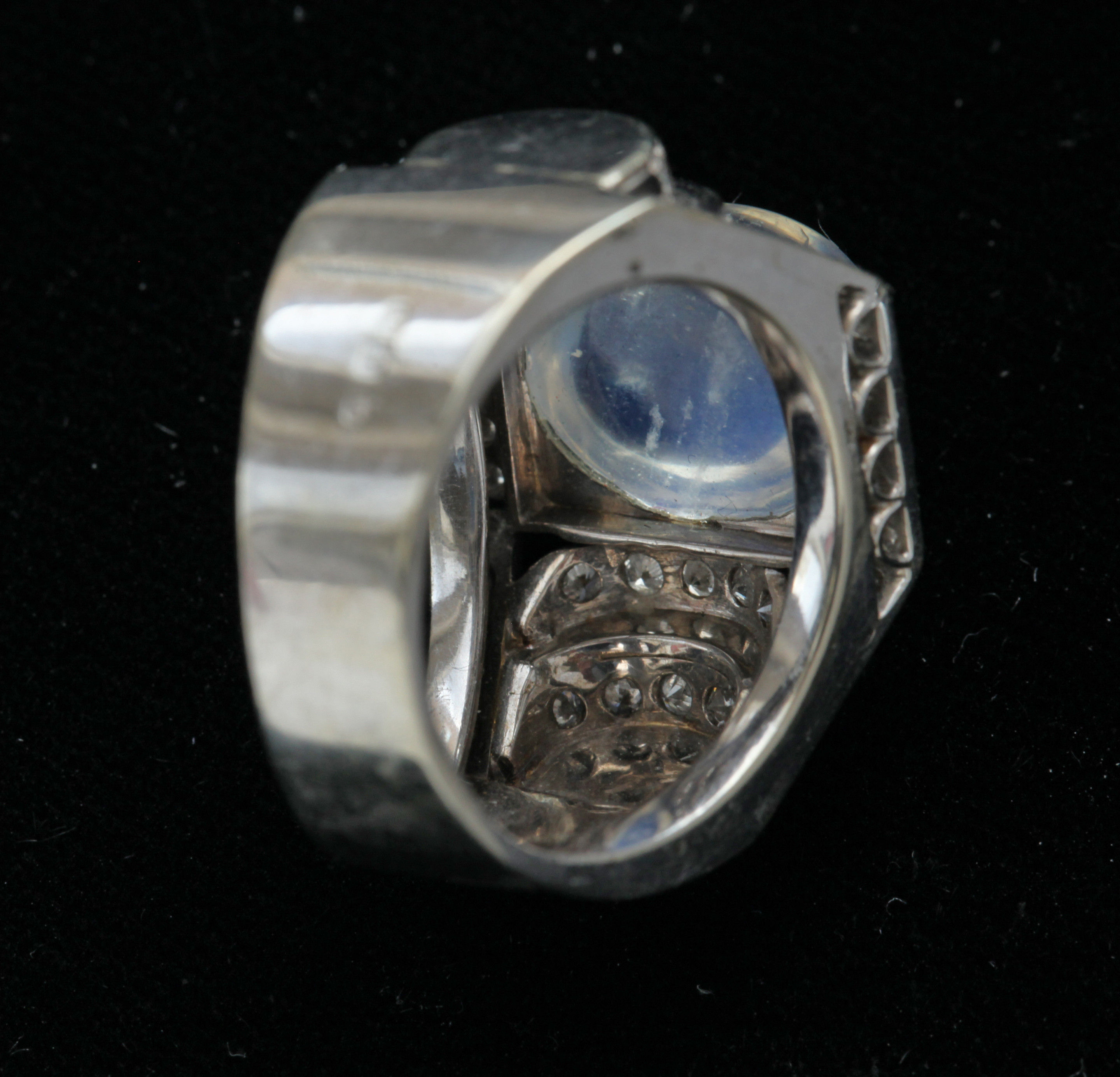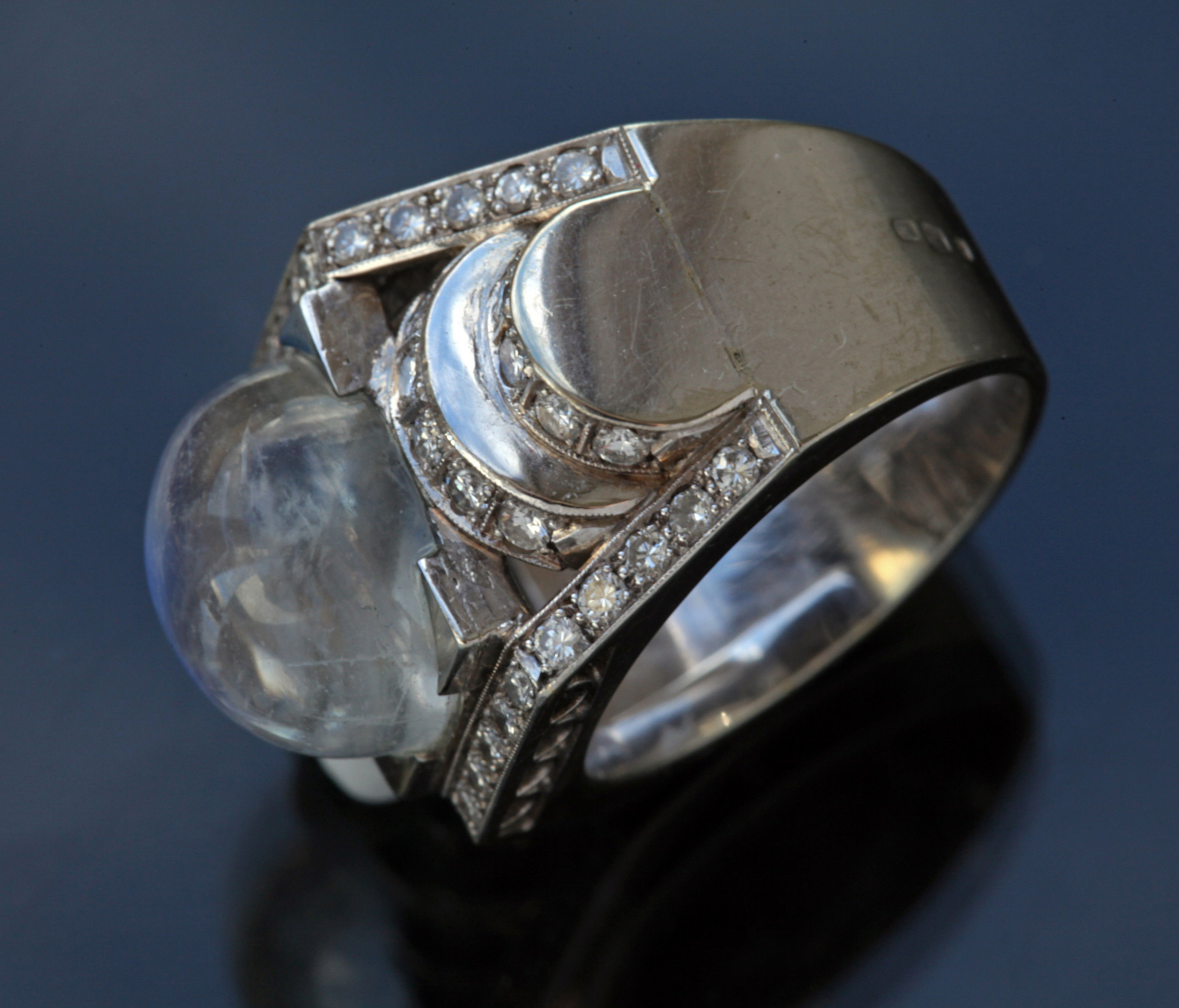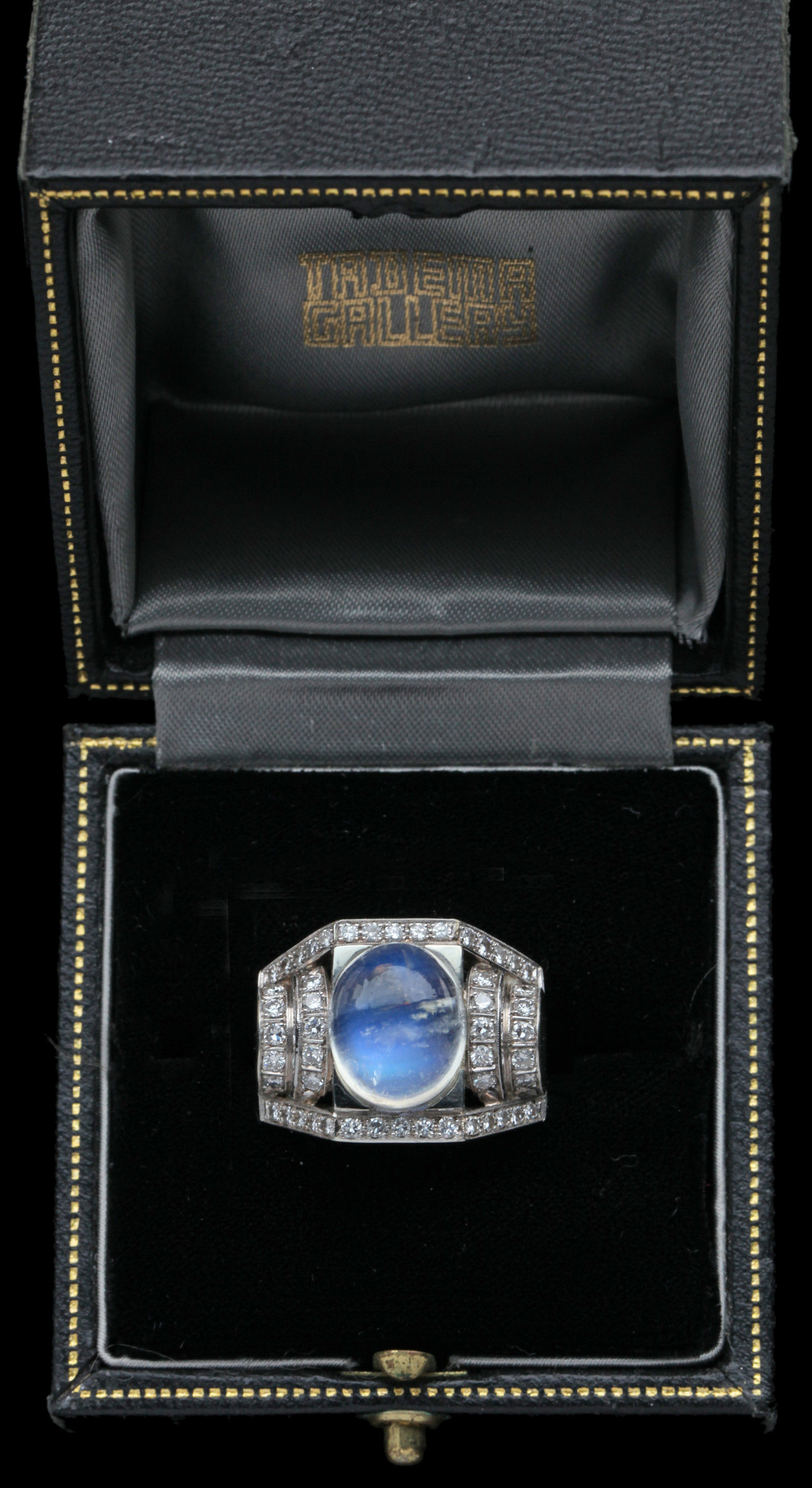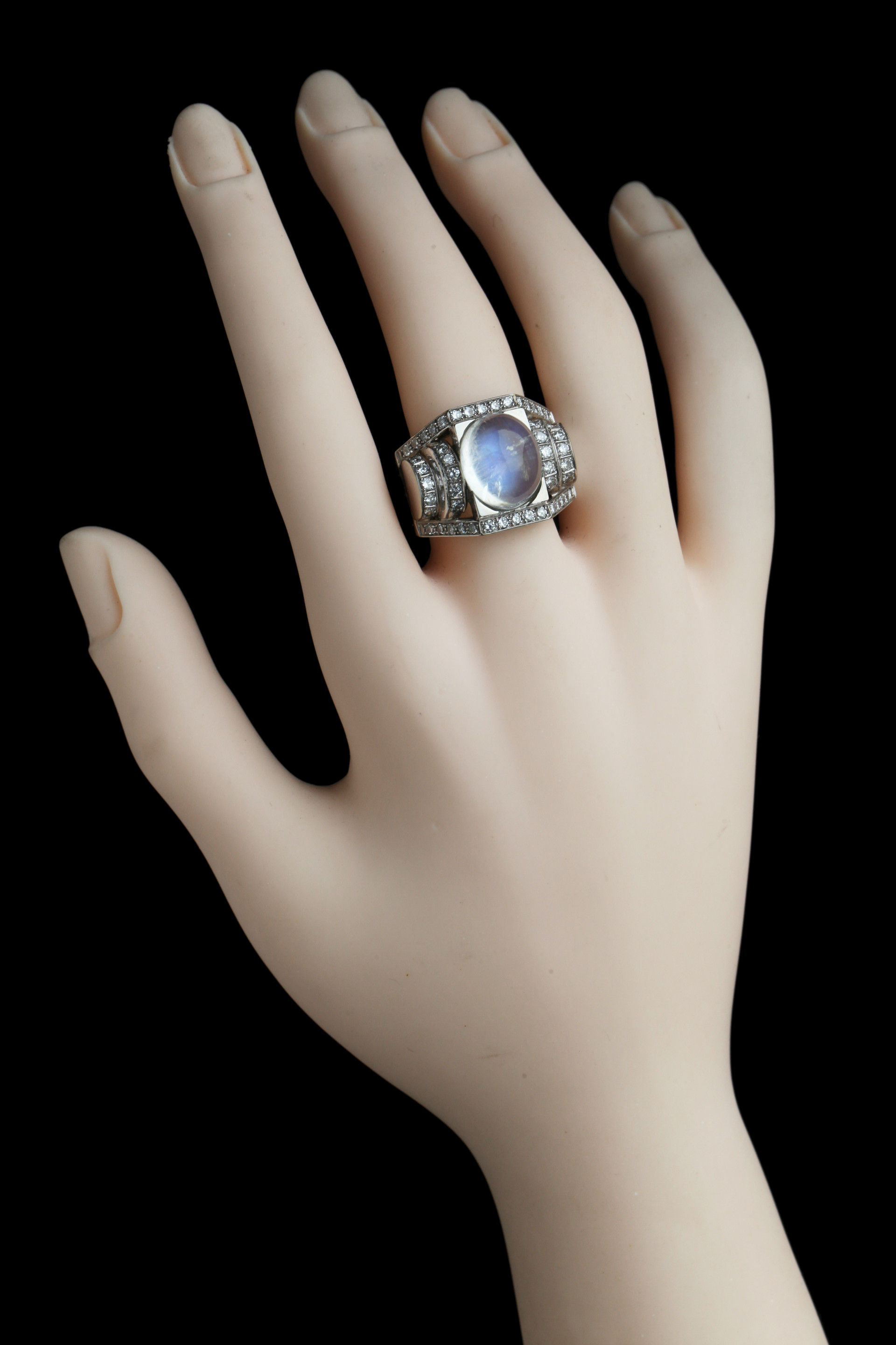 Dazzling Deco white gold ring. The moonstone 10.5 mm x 12.5 mm