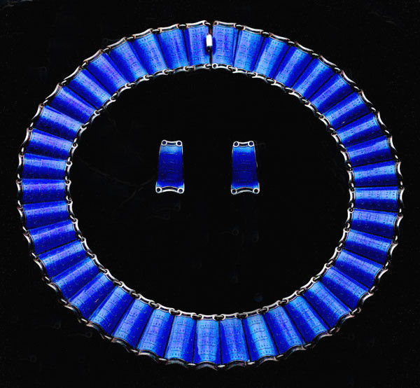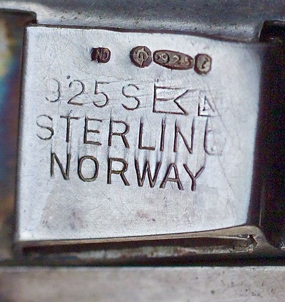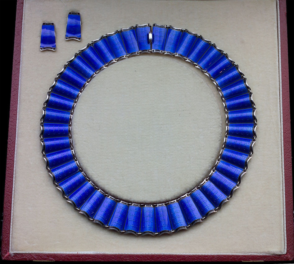 Fitted case, the silk marked: Norwegian Design, Real Enamel, Sterling Silver