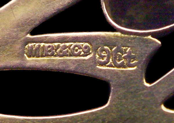| Marks | 'MB & CO' & '9ct' |