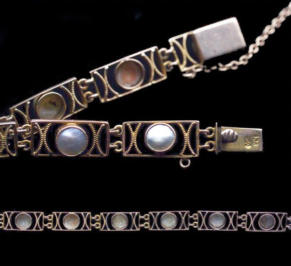 cf. Jewelry & Metalwork in the Arts & Crafts Tradition, Elyse Zorn Karlin, 1993, page 112 Theodor Fahrner Schmuck, Pforzheim, 1990 Documentation by Ulrike von Hase, pages 272-73