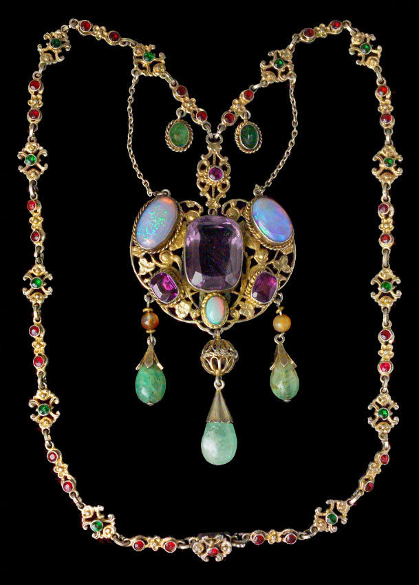 Gilded silver Amethyst Opal Emerald Agate Paste