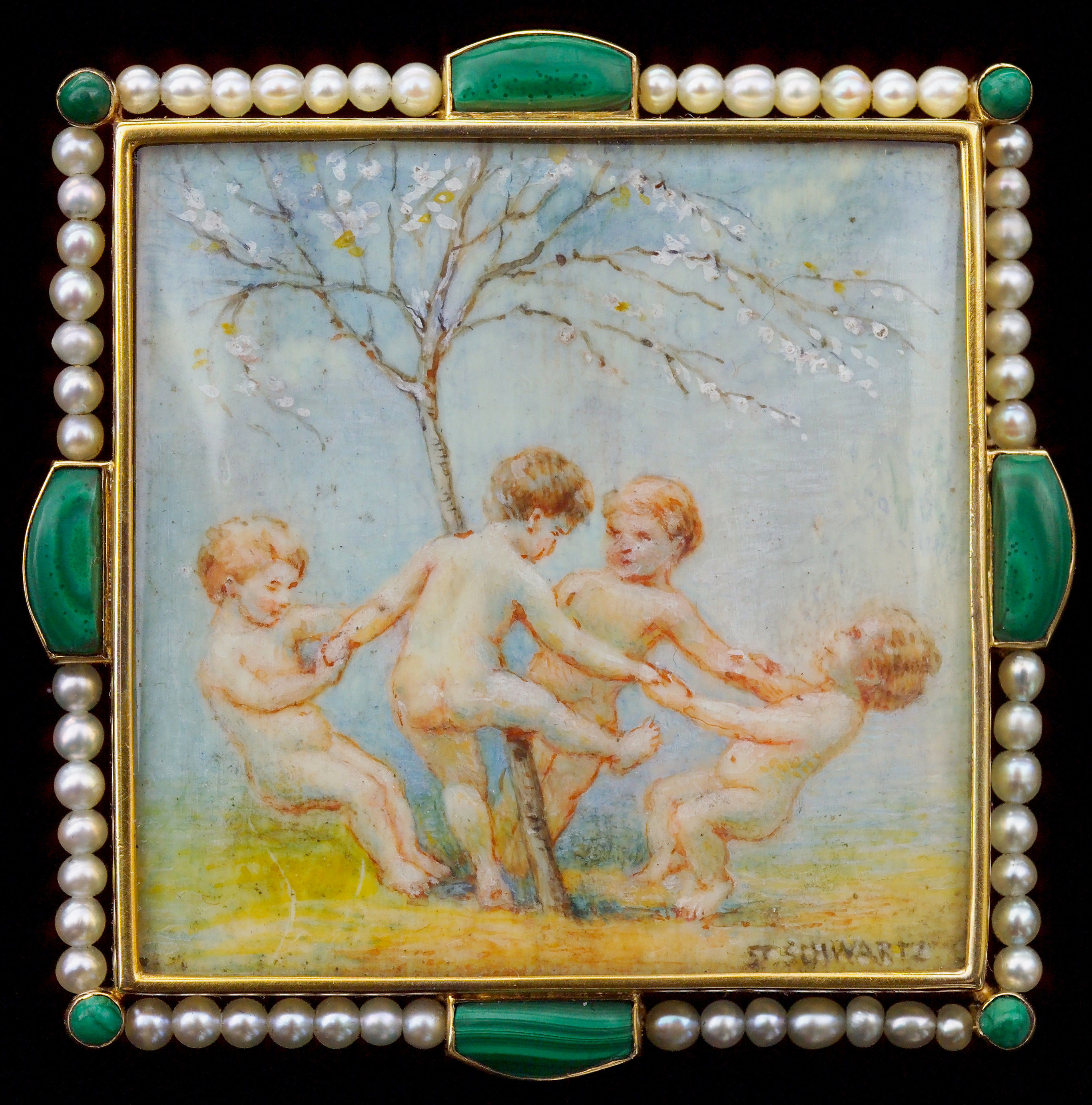 | Marks | The miniature signed:""ST SCHWARTZ"" Pin with makers mark 'SJS' Pin & catch: Vienna poincon |