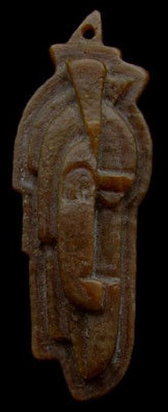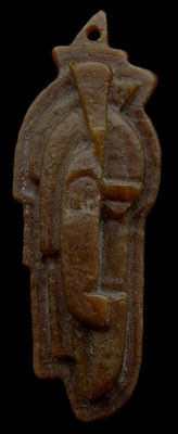 Although the cubist movement took place mostly in painting, sculpture & architecture, there were applied arts examples executed such as this rare pate de verre pendant