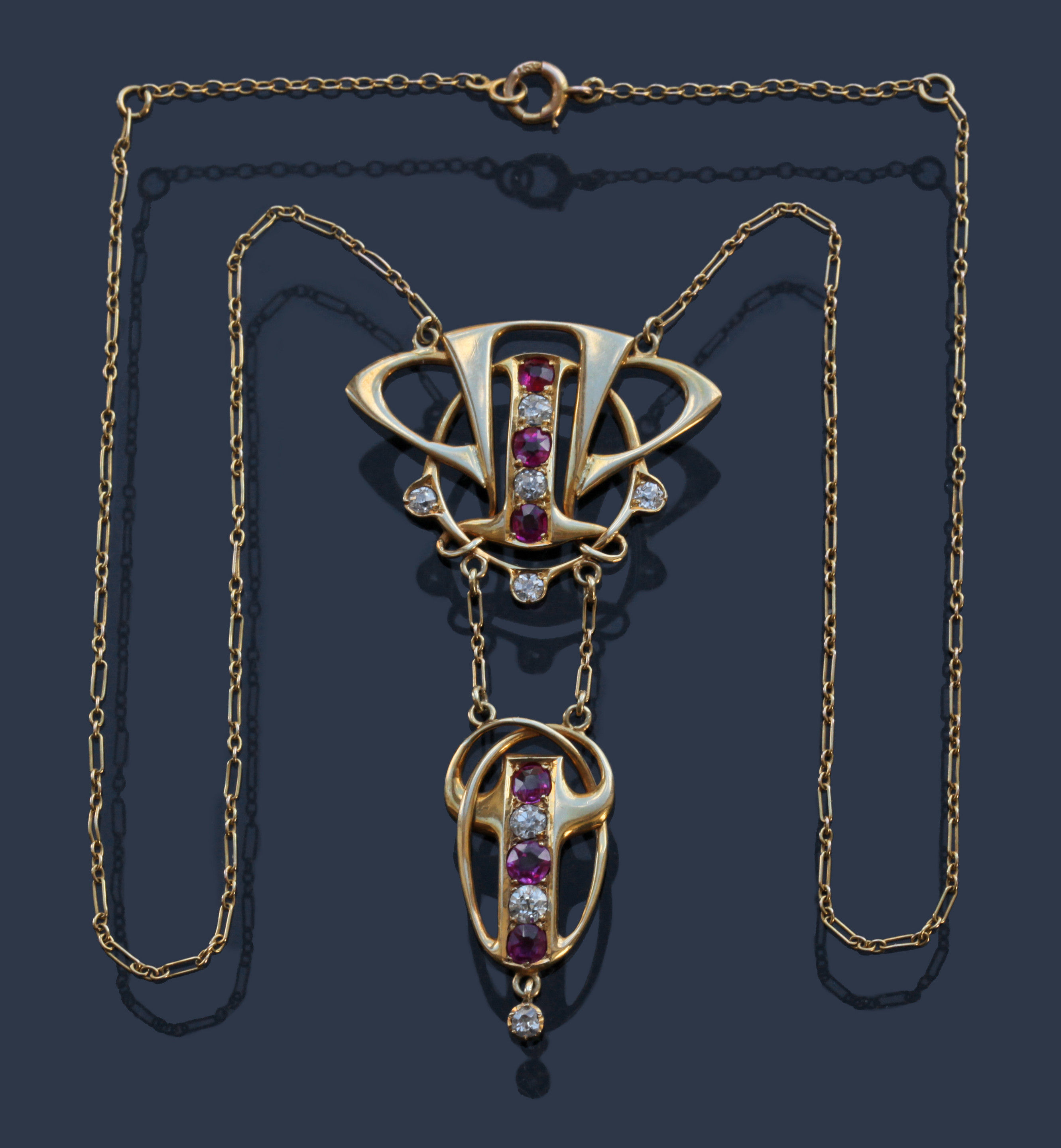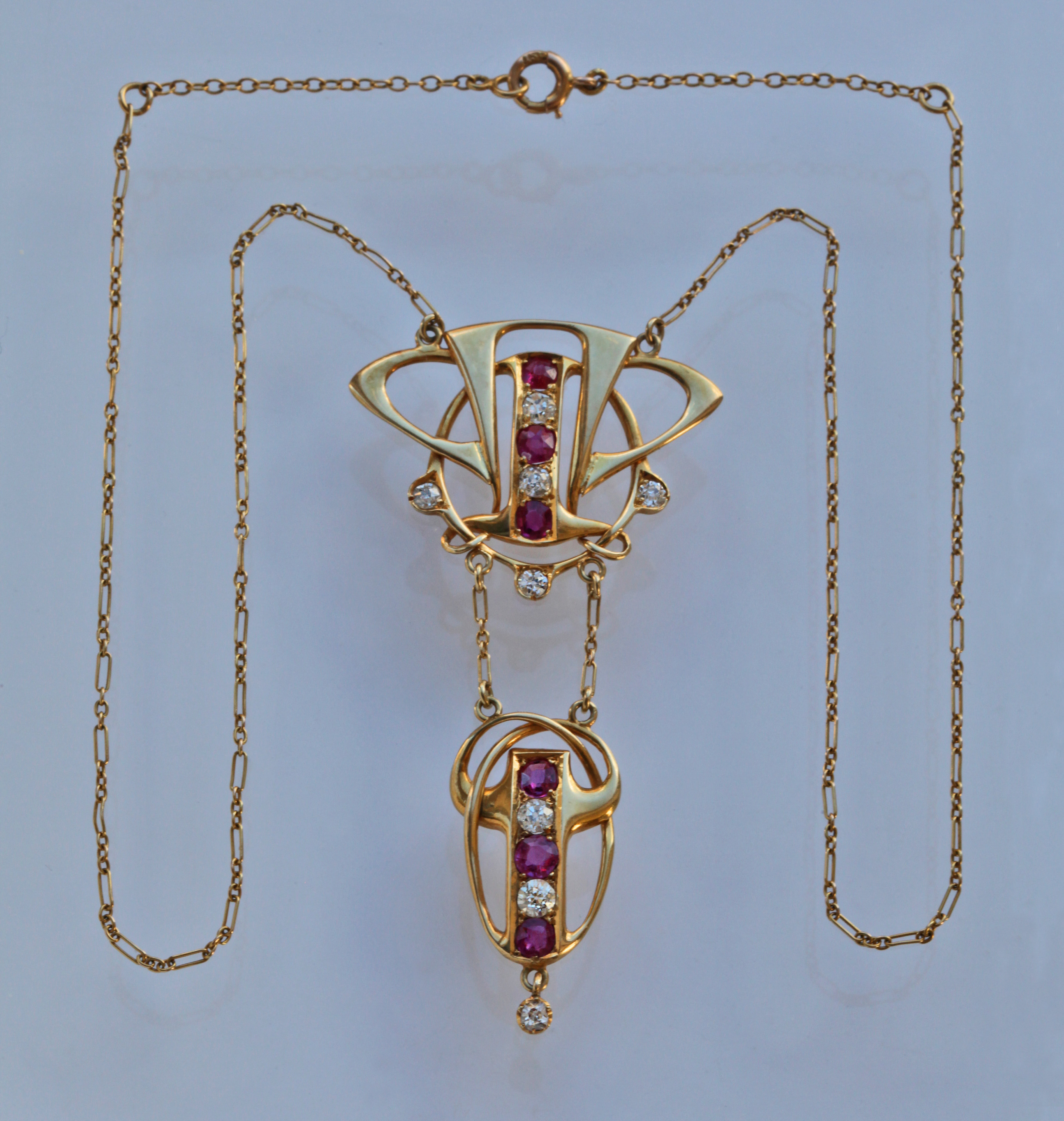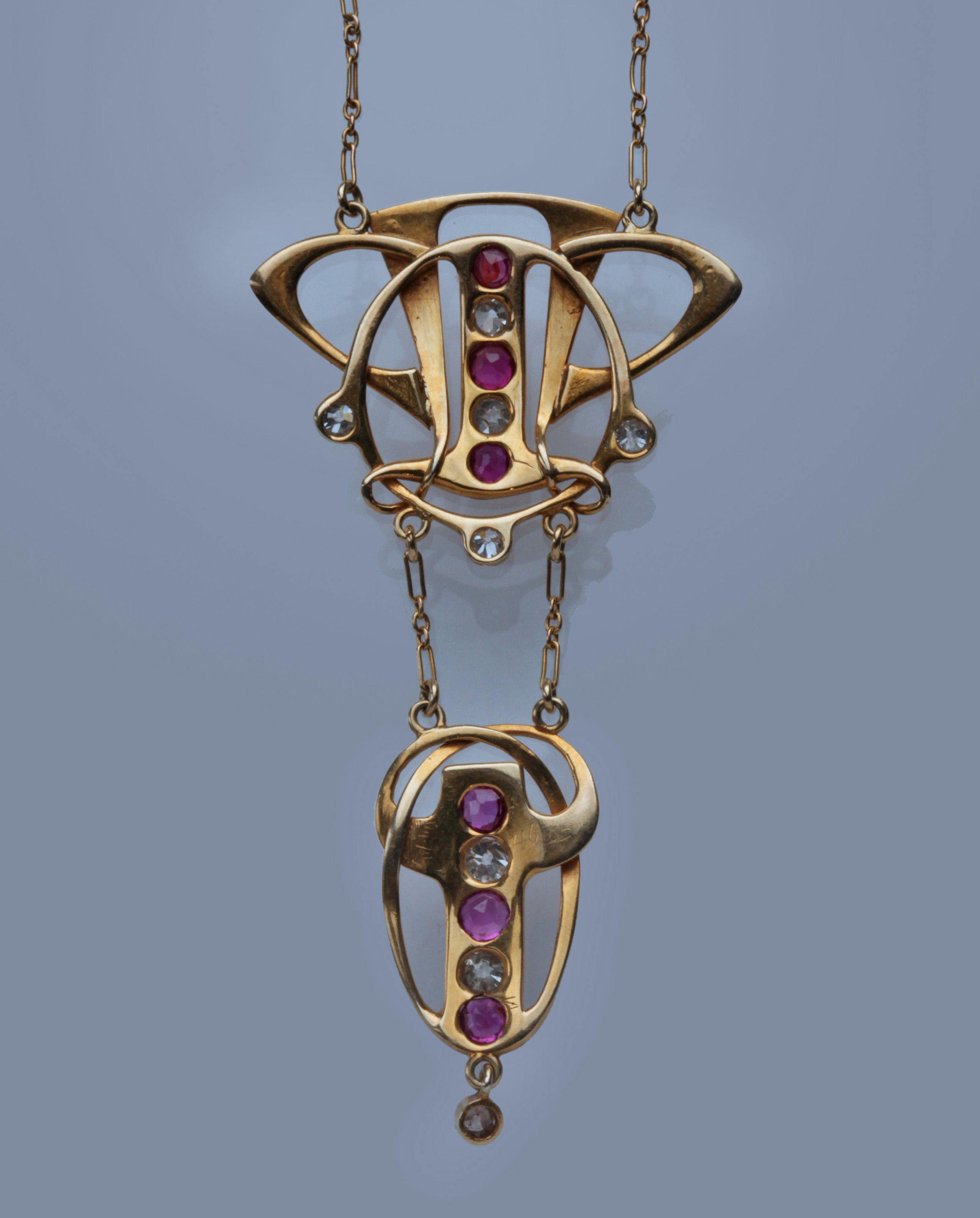 A beautiful ruby & diamond necklace by Archibald Knox for Liberty & Co.