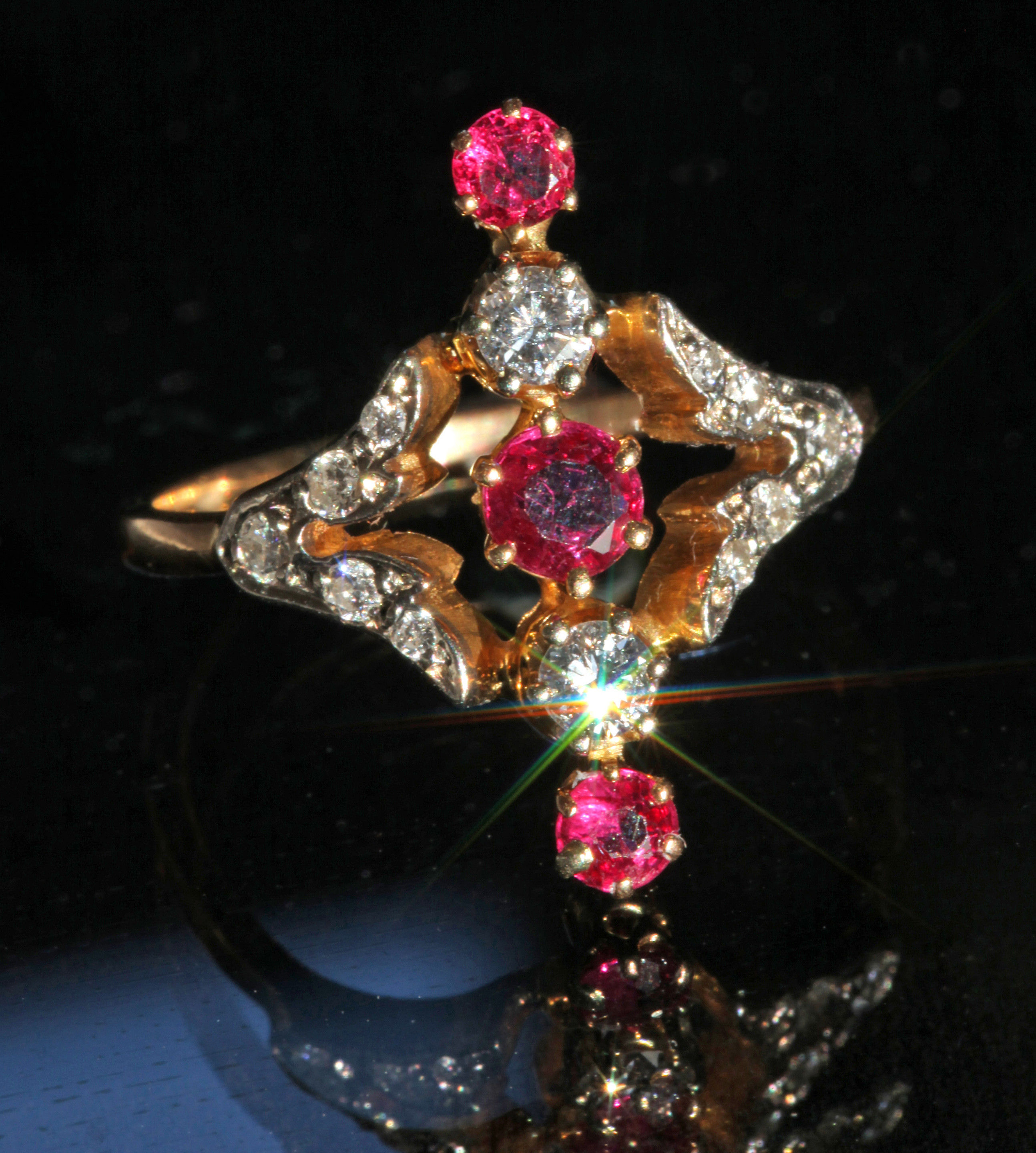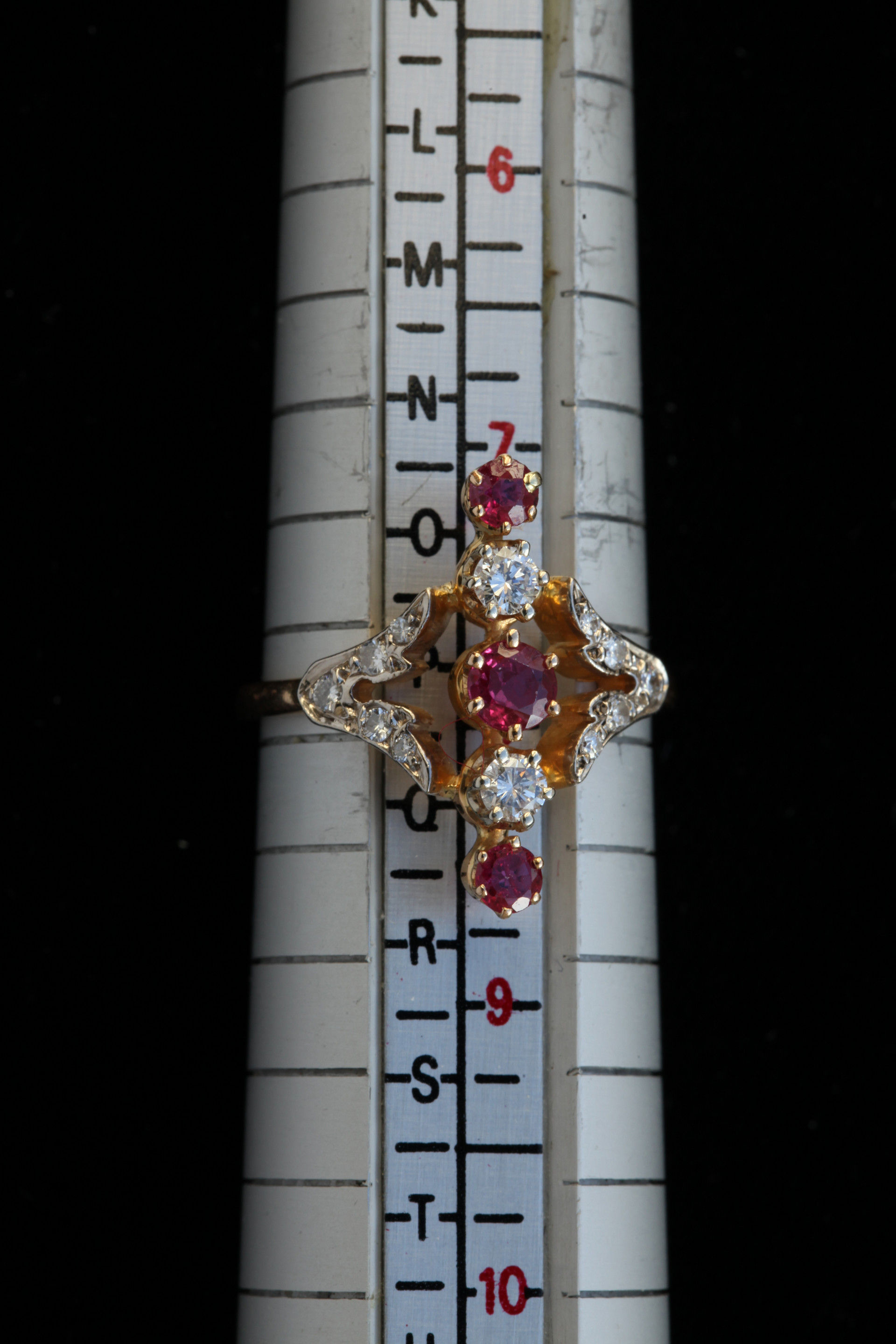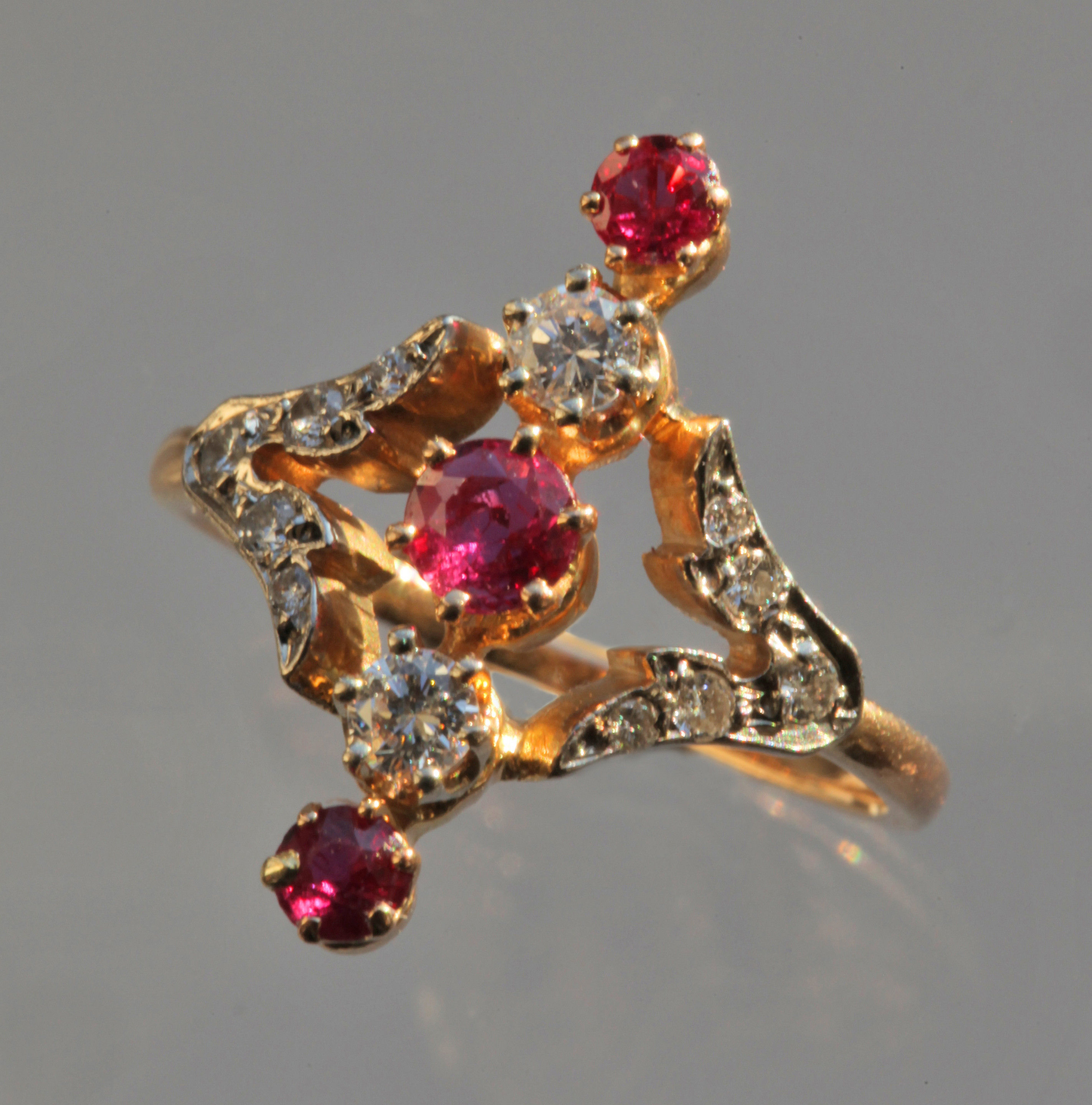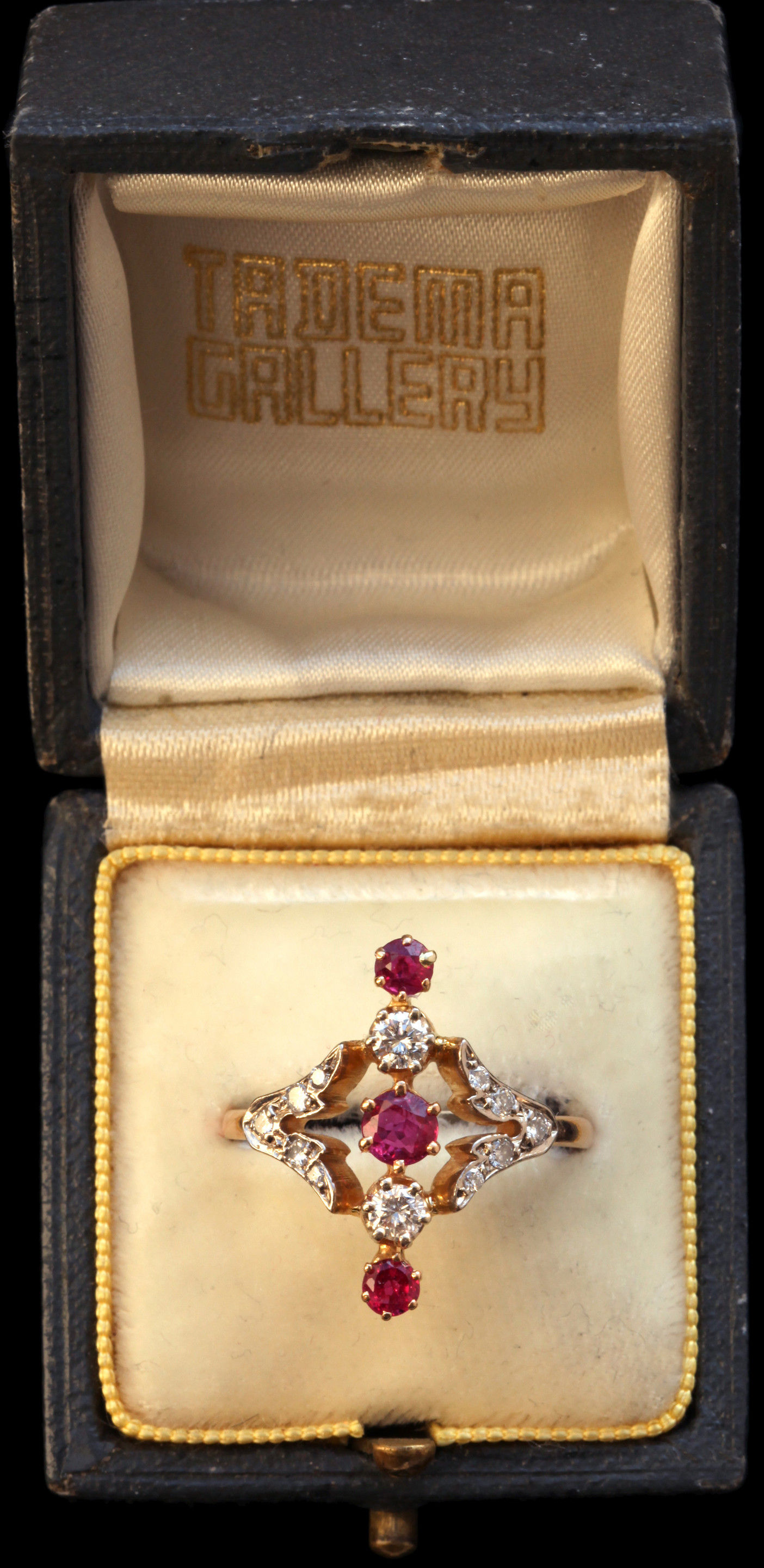 2 brilliant cut diamonds 0.20cts approx. 3 rubies 0.35 cts approx.