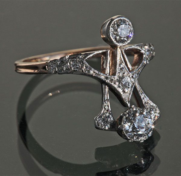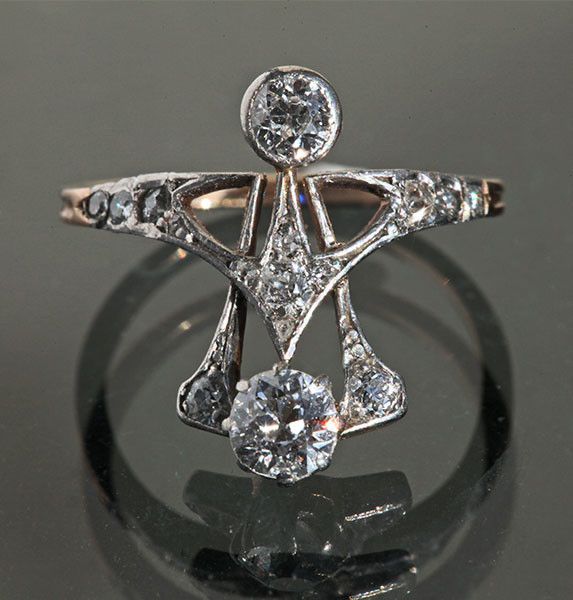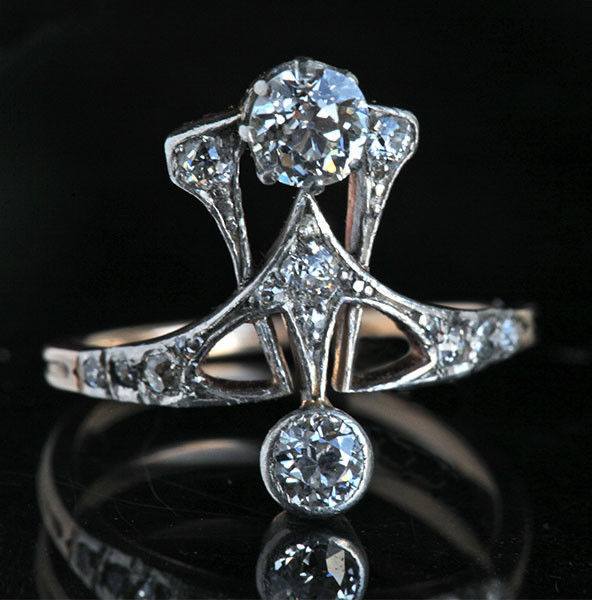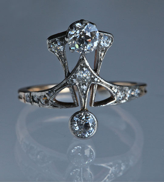 Victorian cut diamonds: top 0.35cts approx. base 0.15cts approx. 13 smaller diamonds 0.20 cts approx.