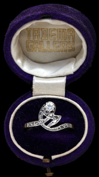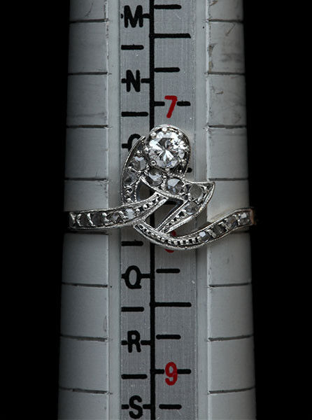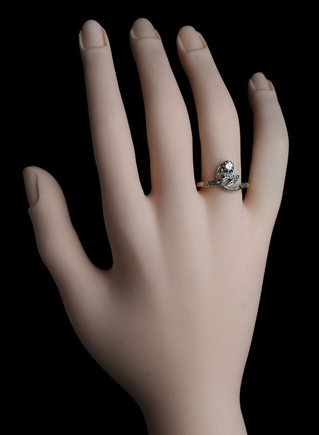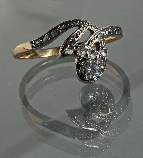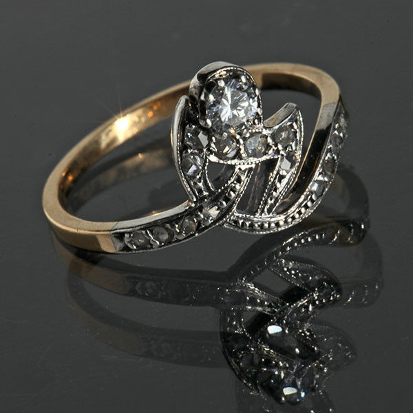Brilliant cut diamond 0.15 cts approx with 14 rose cut diamonds. Suitable as an engagement ring