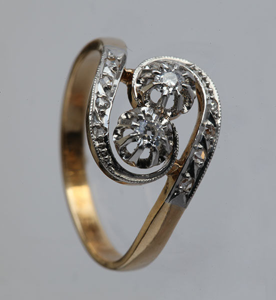 2 old cut centre diamonds & 8 rose cut diamonds total 0.25 cts approx