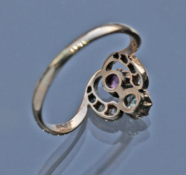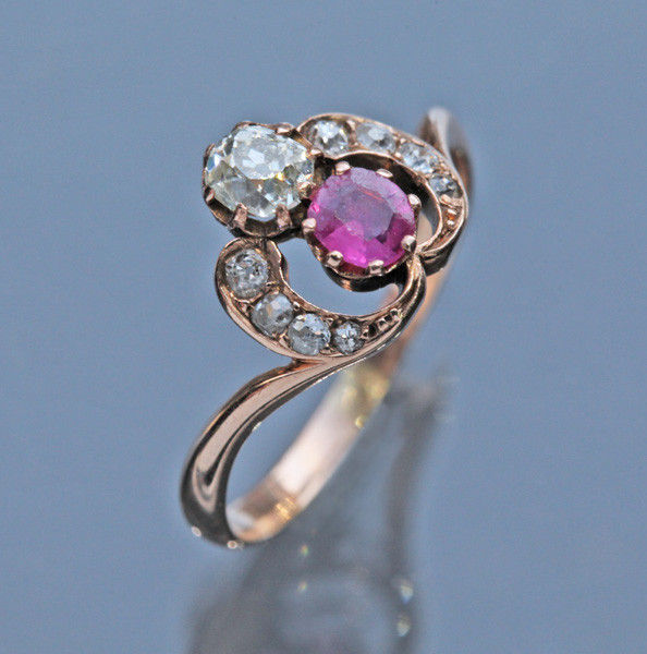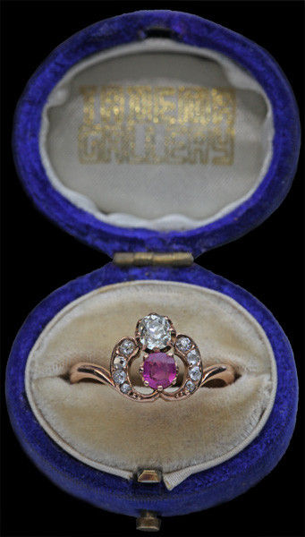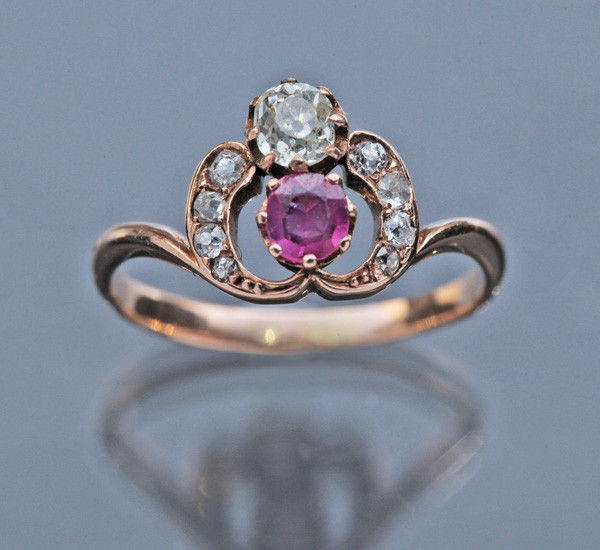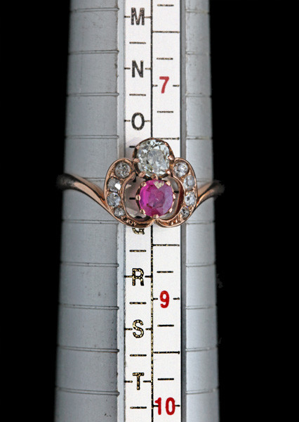 Ruby 0.25 cts approx. Old cut diamond 0.20 cts approx. 8 old cut diamonds surrounding 0.15