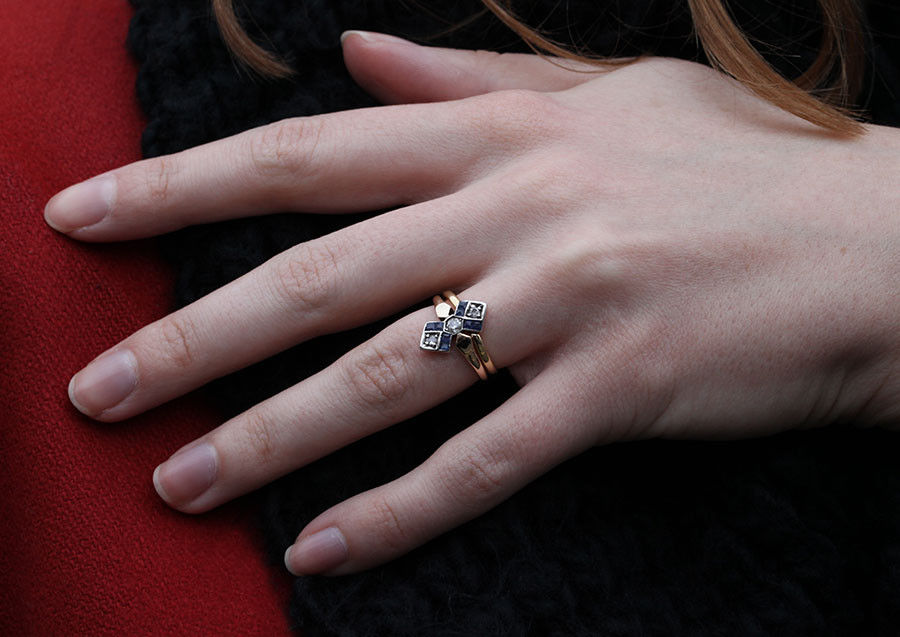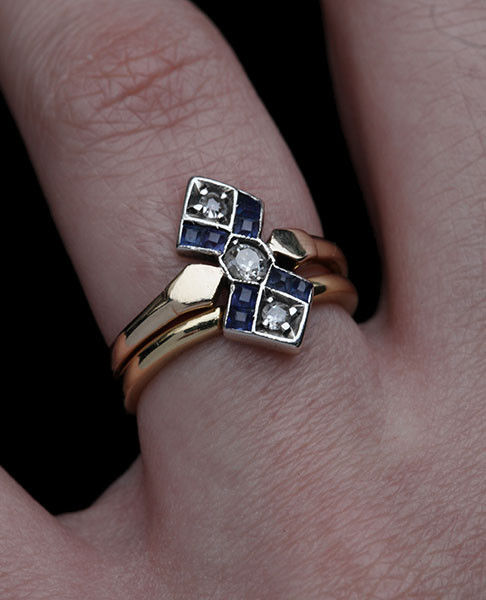 Victorian & European cut diamonds 0.16 cts approx encased by 8 square sapphires