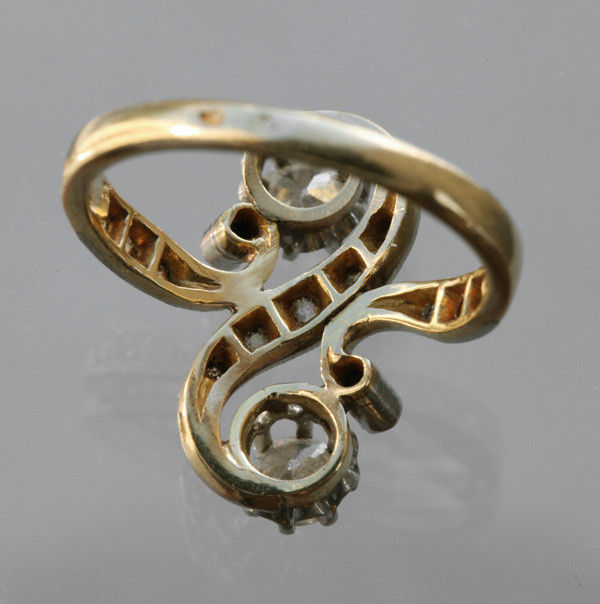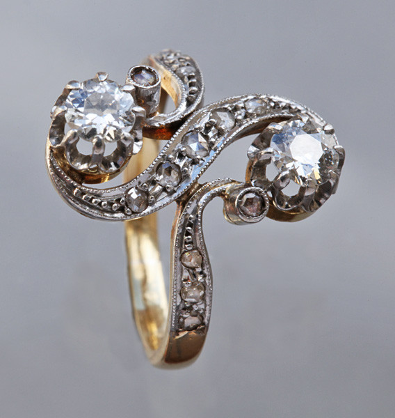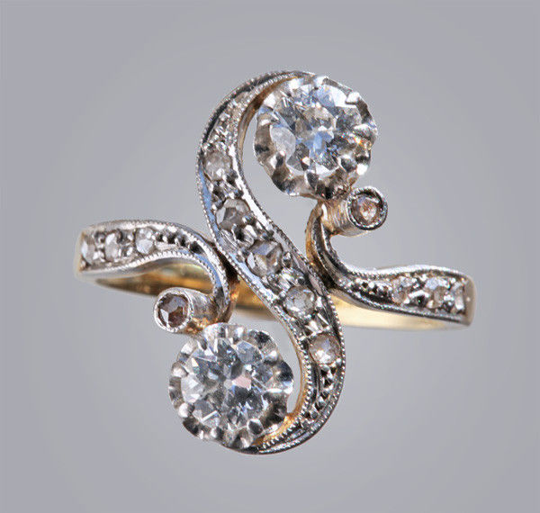 13 rose cut diamonds 0.15 cts approx 2 old cut diamonds 0.50 cts approx each Suitable as an engagement ring