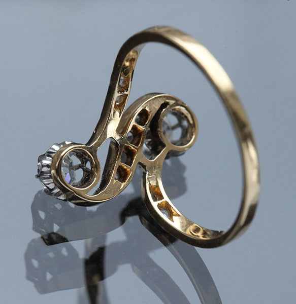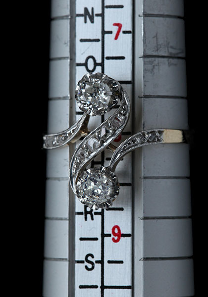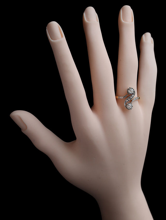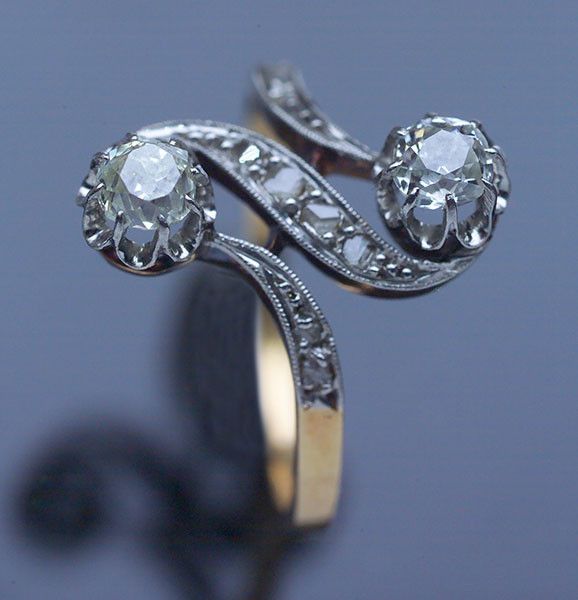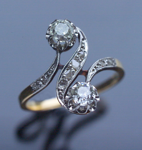 2 old cut diamonds 0.40 cts & 8 rose cut diamonds 0.8 cts Suitable as an engagement ring