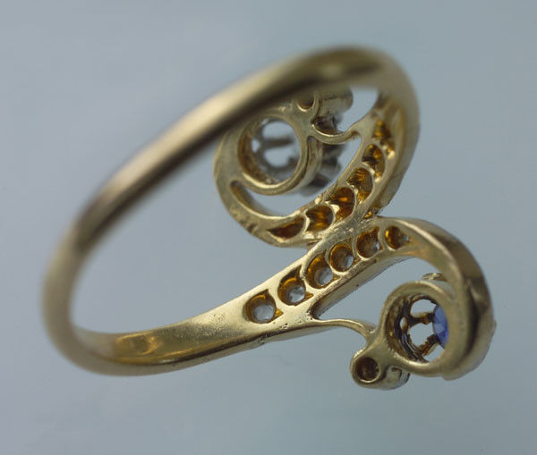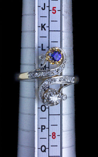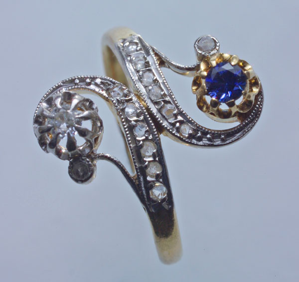 Old cut diamond 0.10 cts approx Royal blue sapphire 0.10 cts approx & 14 rose cut diamonds 0.15 cts approx