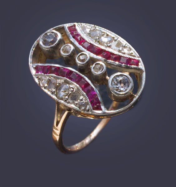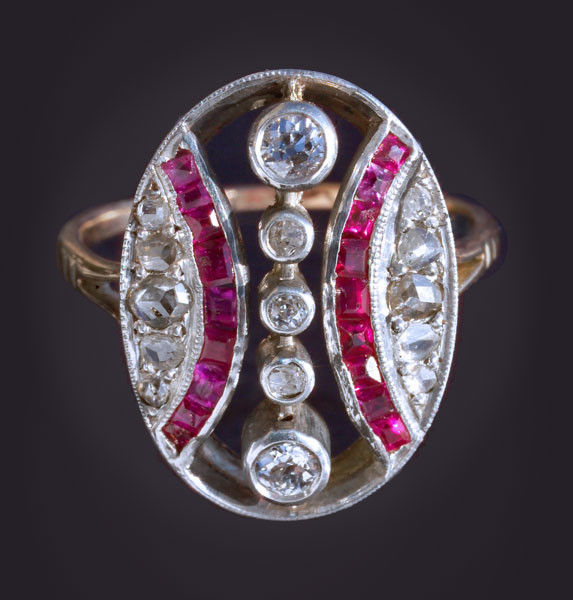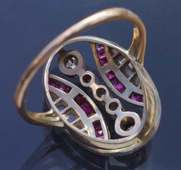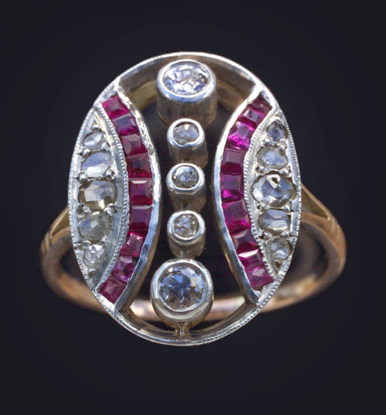 5 old cut diamonds 0.25 cts approx 10 rose cut diamonds 0.15 cts approx 18 rubies condition commensurate with age