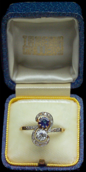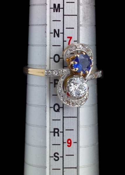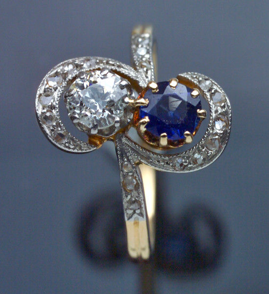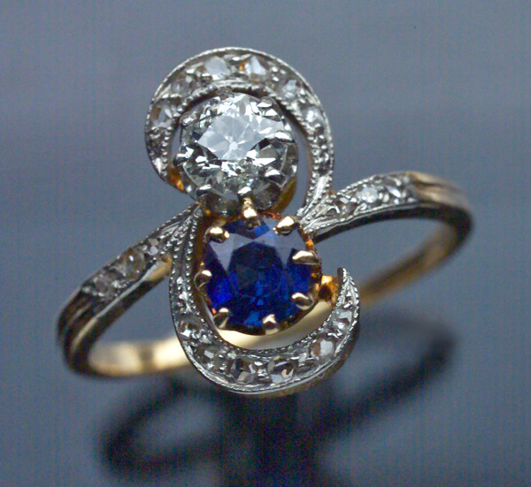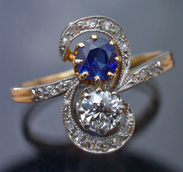 Old cut diamond 0.4 cts approx Sapphire 0.4 cts approx 18 rose cut diamonds 0.25 cts approx Suitable as an engagement ring