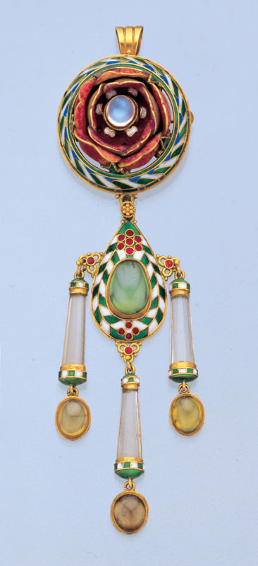 Gold, enamel, moonstone, crystal & tourmaline