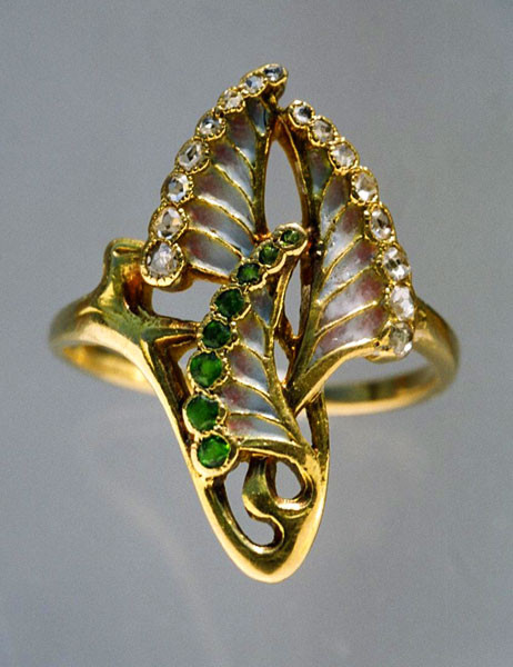 Gold, plique-à-jour, demantoid garnet, diamond