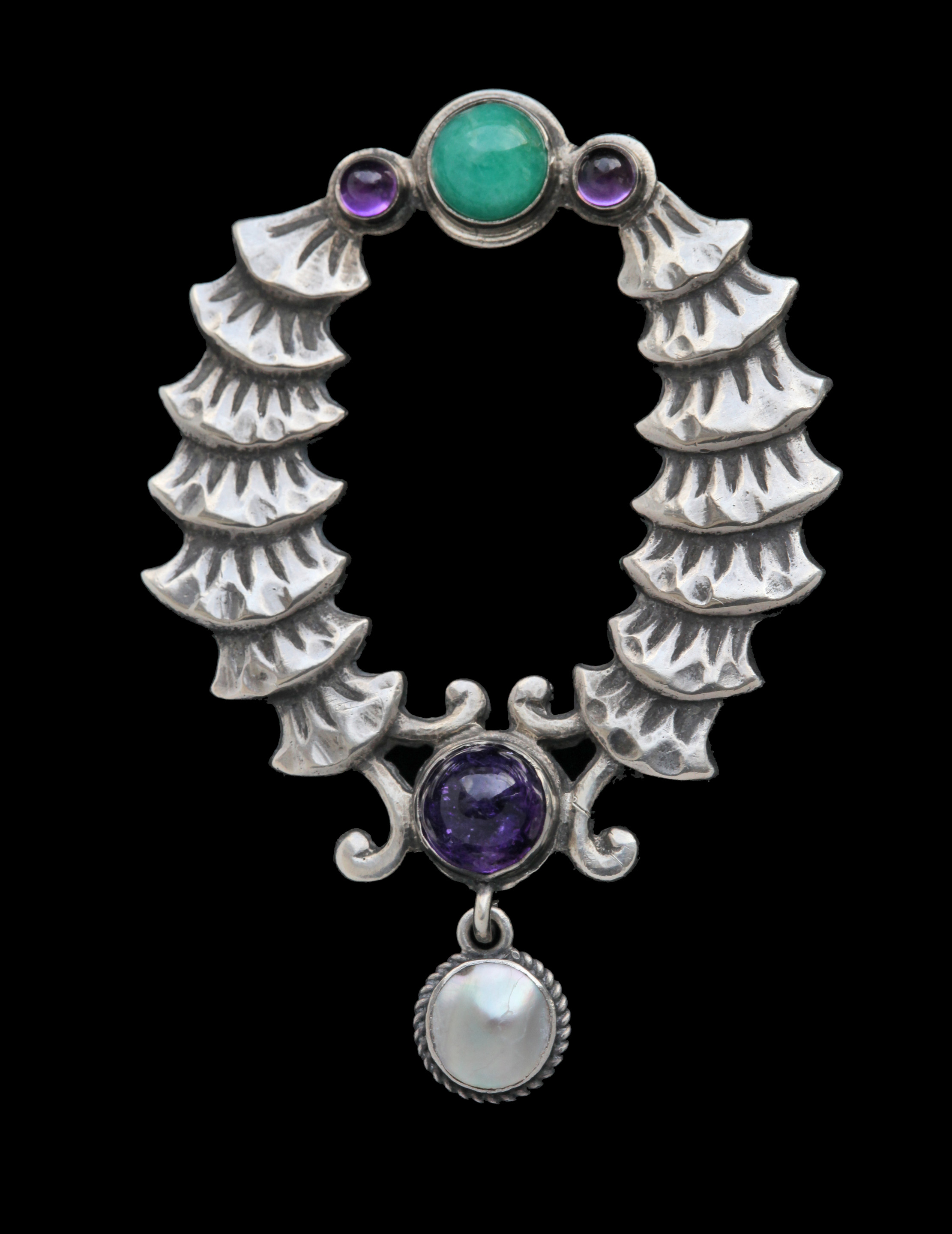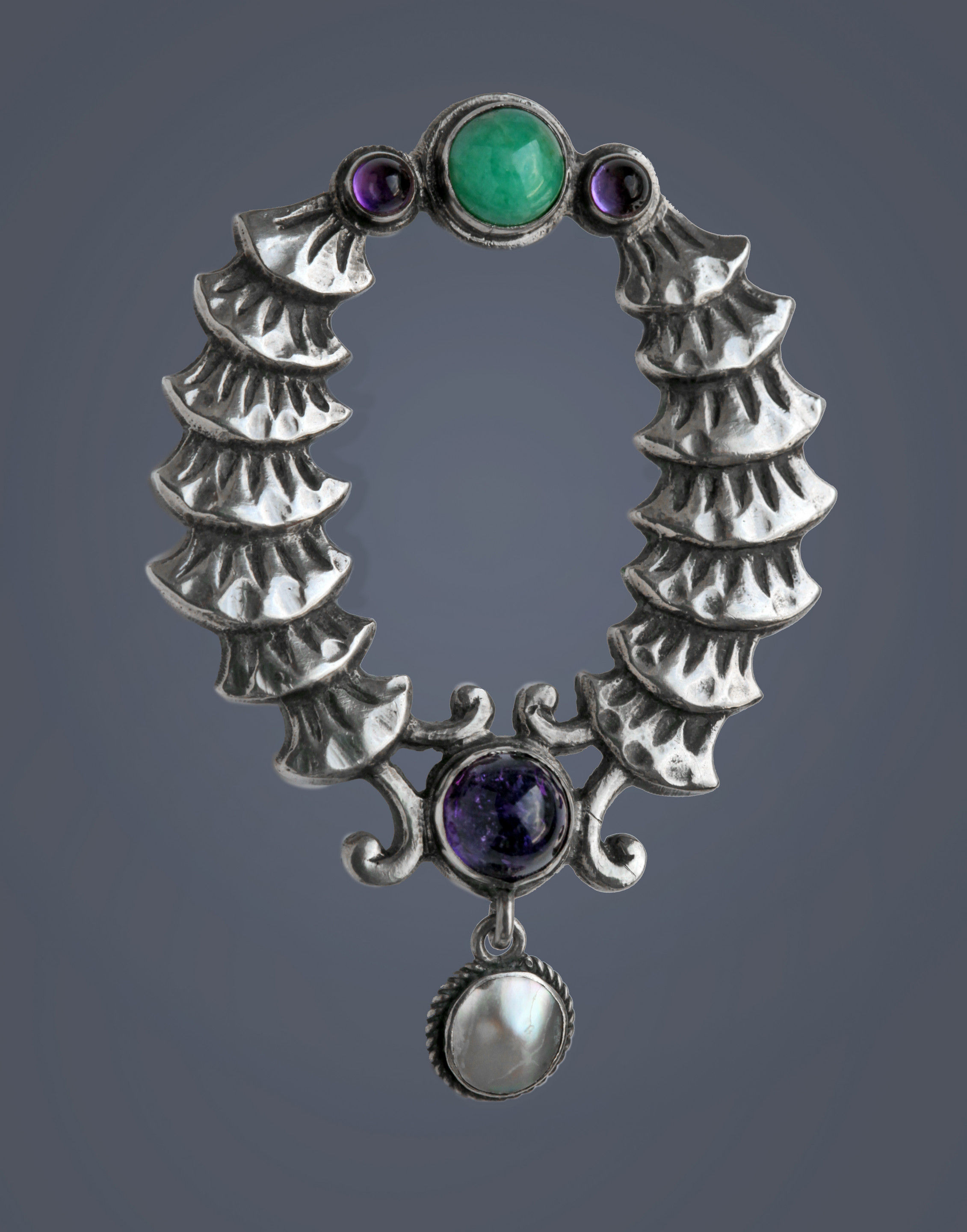 Silver Emerald Amethyst Pearl