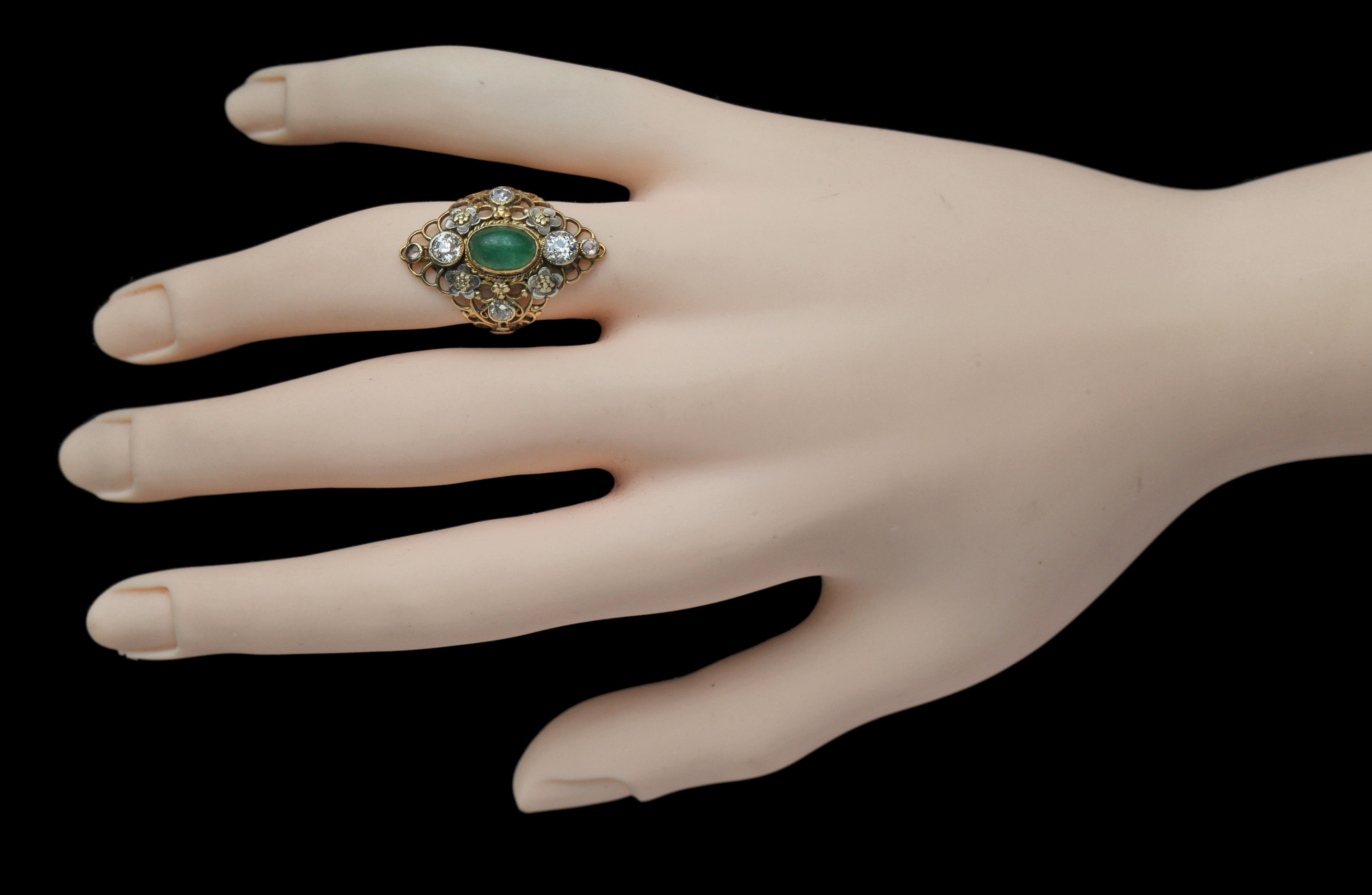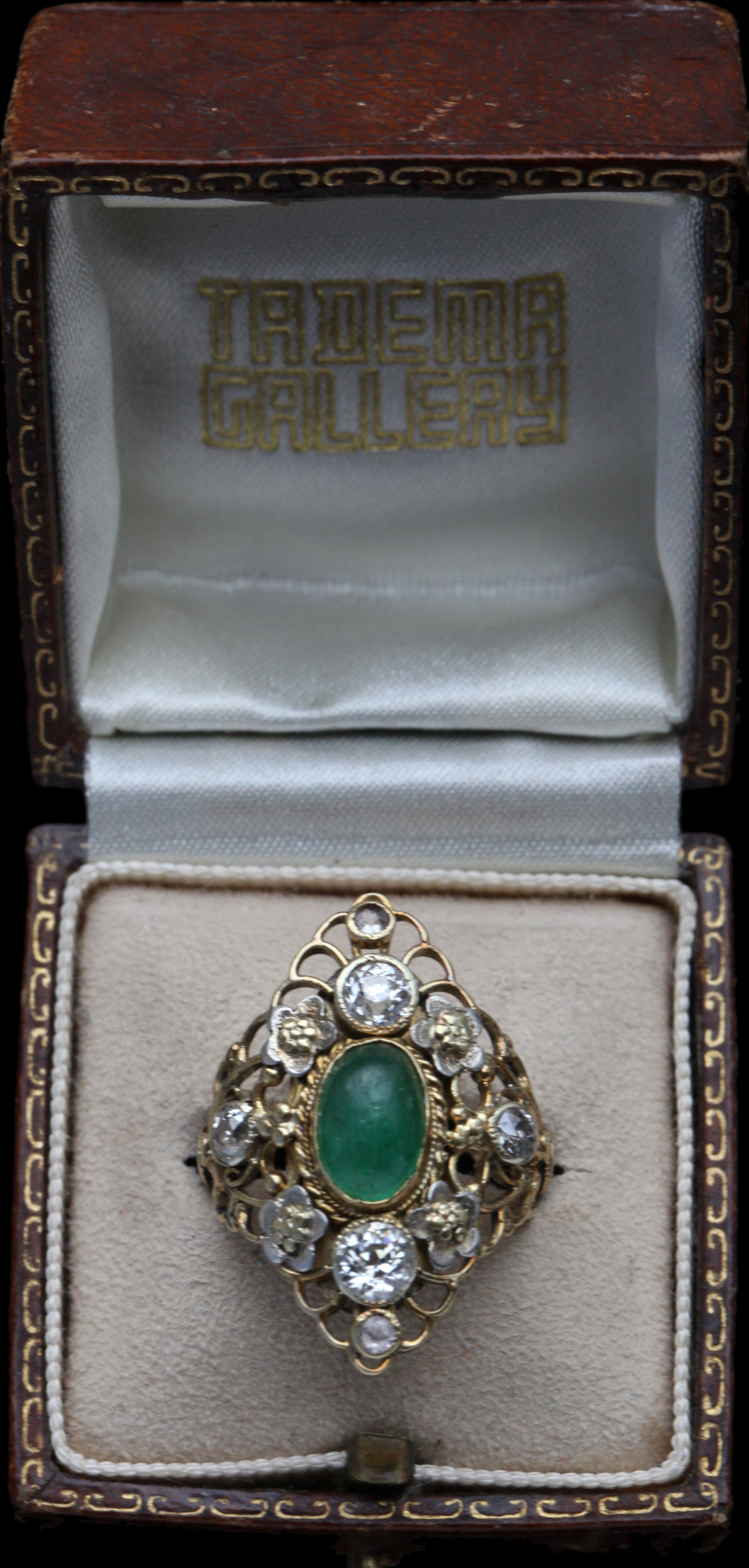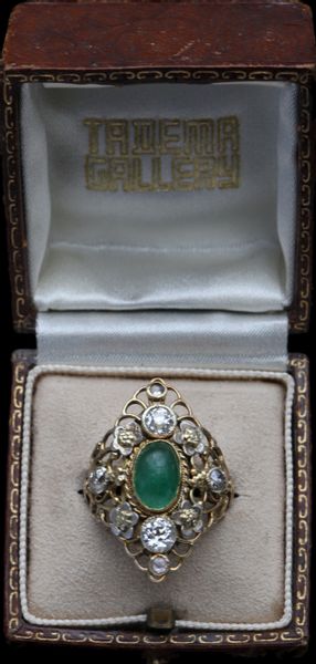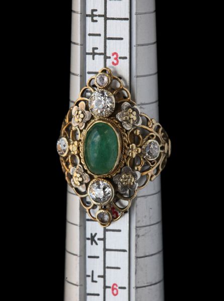 Emerald 1.25cts approx. Victorian cut diamonds 0.70 cts approx & two tiny crystals.