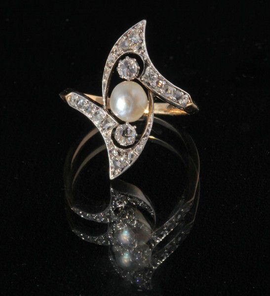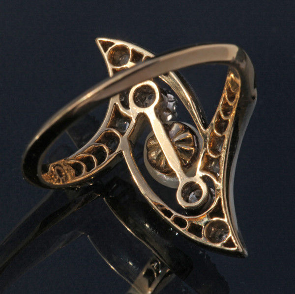 High quality, very strong celtic form. 22 rose cut diamonds 0.30 cts approx. 2 old cut diamonds 0.10cts appox