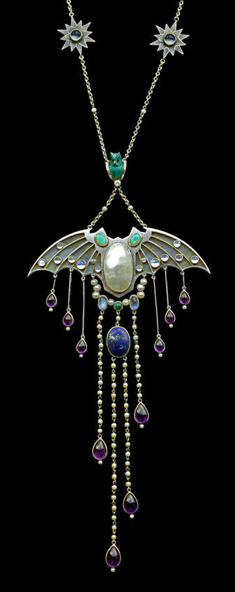 Silver, gold, opal, enamel, moonstone, pearl, amethyst, lapis, turquoise, ruby diamond