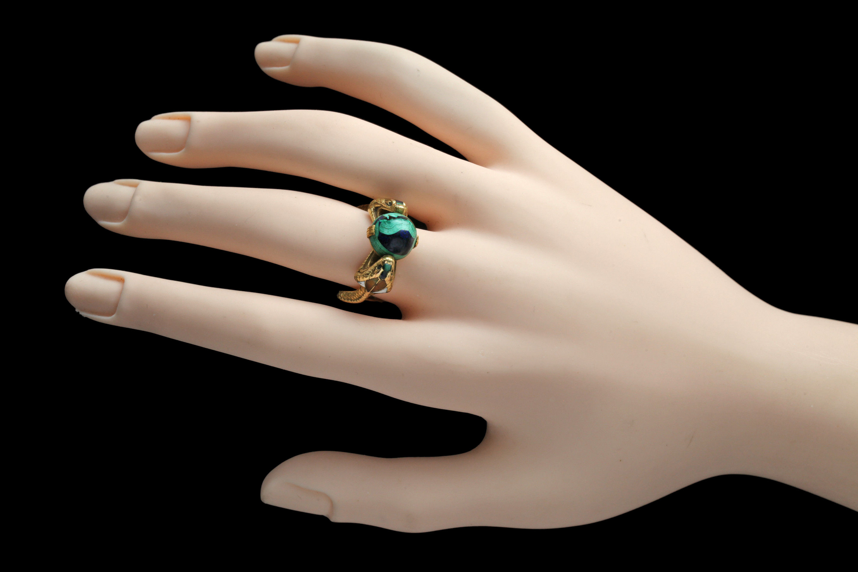The snake is considered divine, a symbol of immortality, a protective talisman. The crystal is a natural amalgam of malachite and lapis lazuli, long considered to have Metaphysical and Healing Properties.