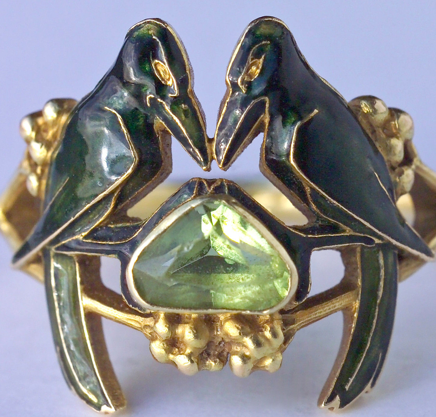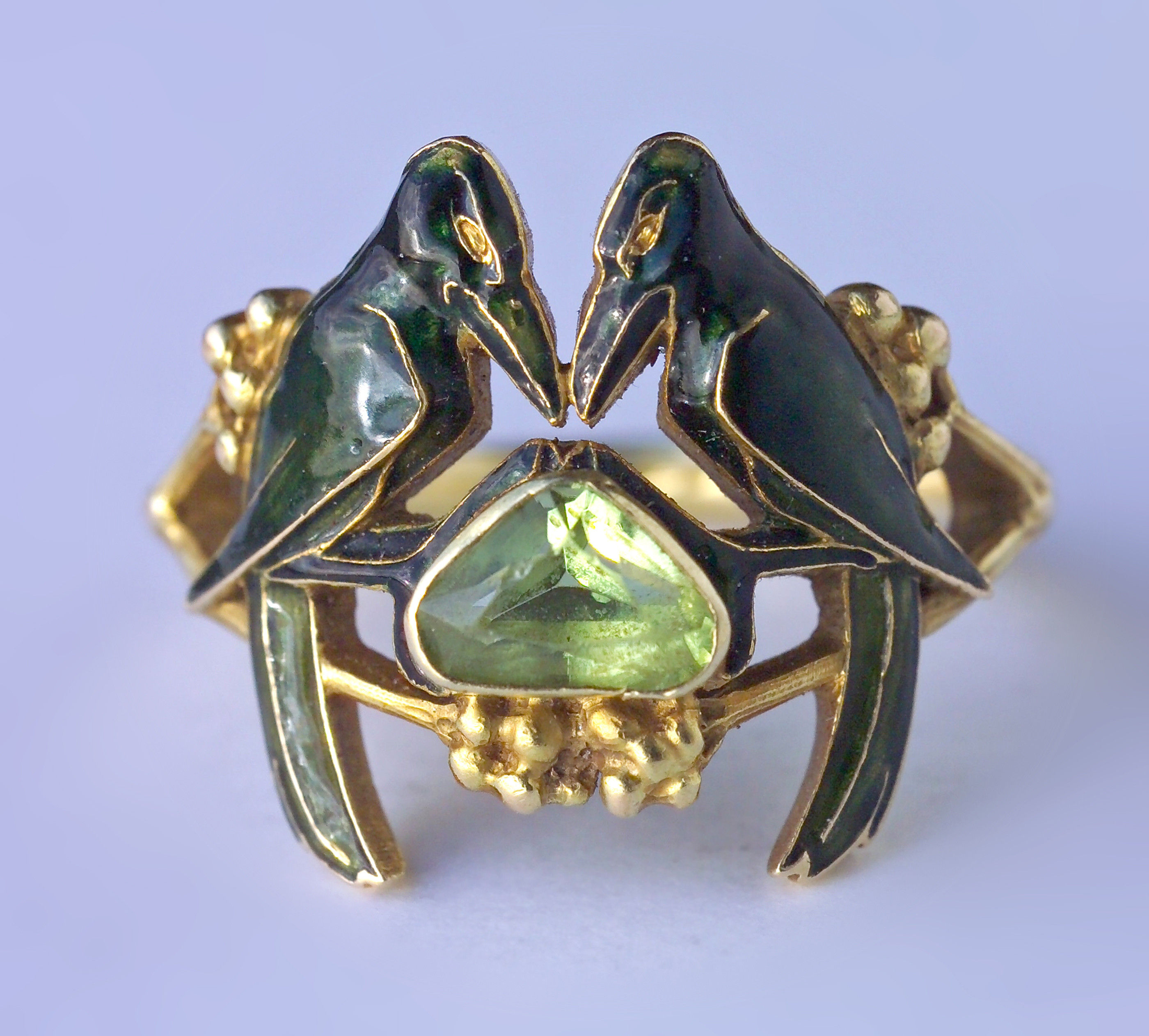 Sigrid Barten, René Lalique, Schmuck und Objets d’arts, 1890-1910, Munich 1977 (1989), nos. 1338 and 1339 shows the drawing for this ring, c. 1902-1904 with a description of materials such as the triangular peridot.