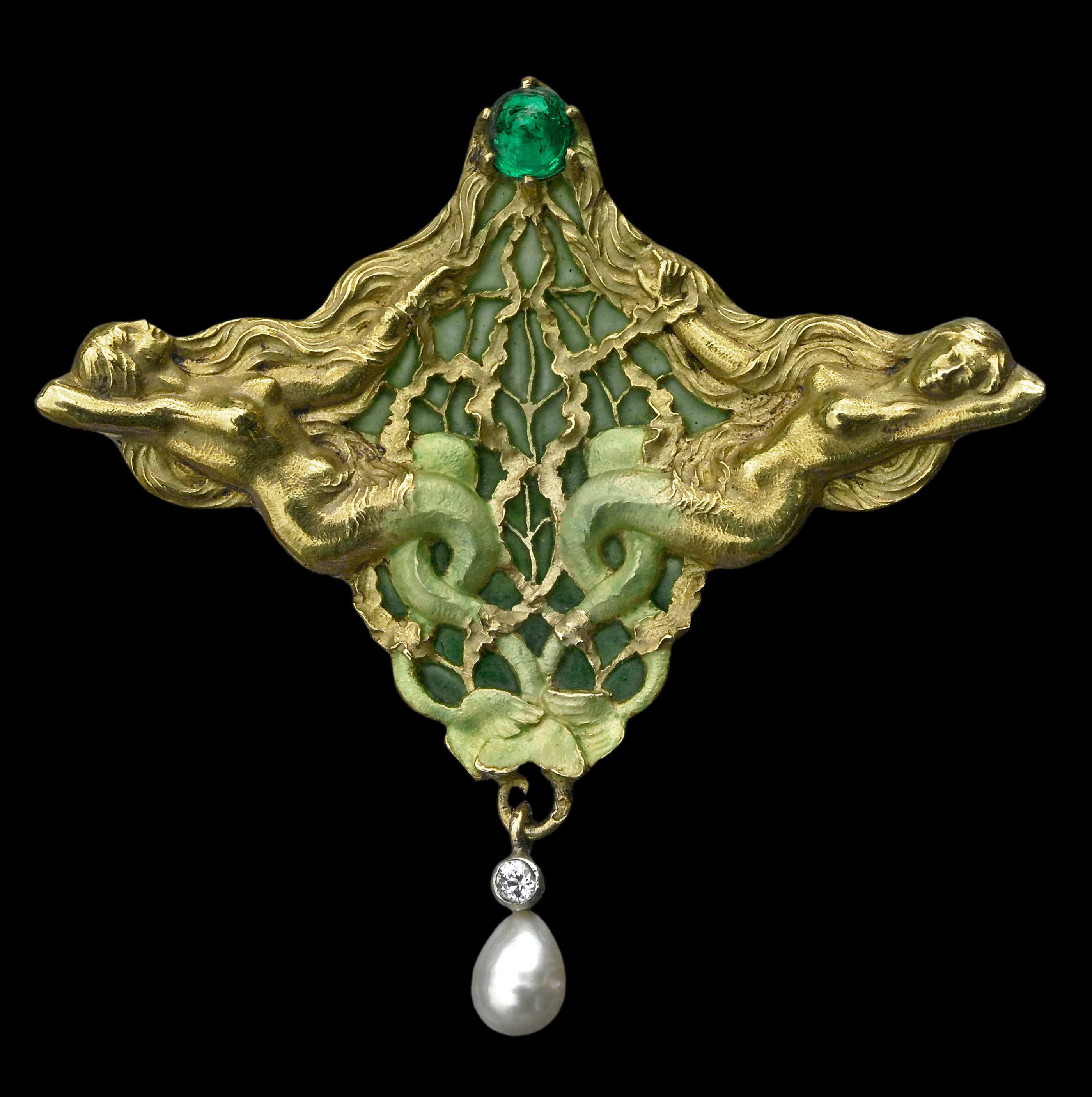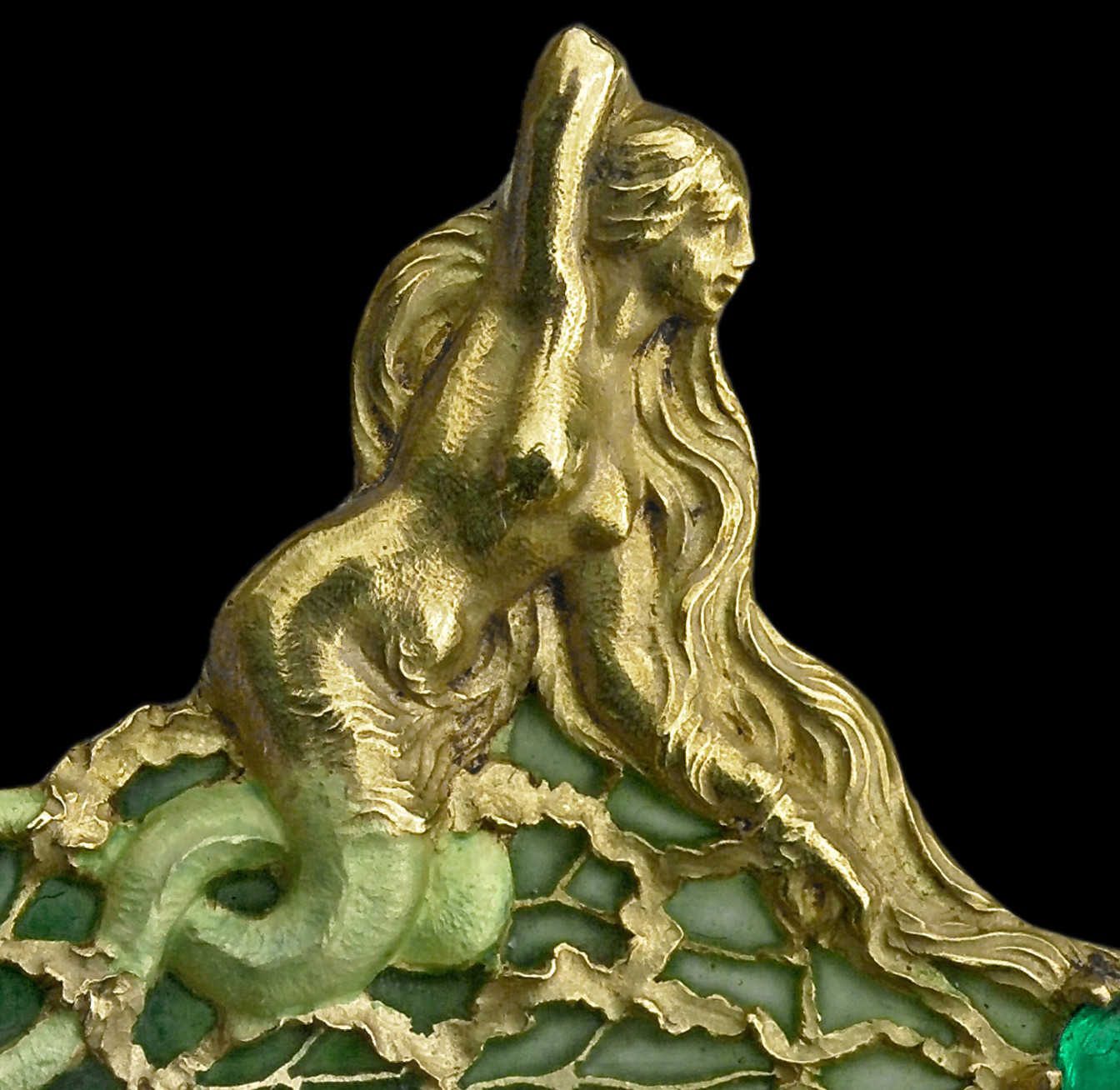 The Sirens two tails represent the unity of earth & water, body & soul. Beautifuly modelled with fine pique-à-jour enamel.