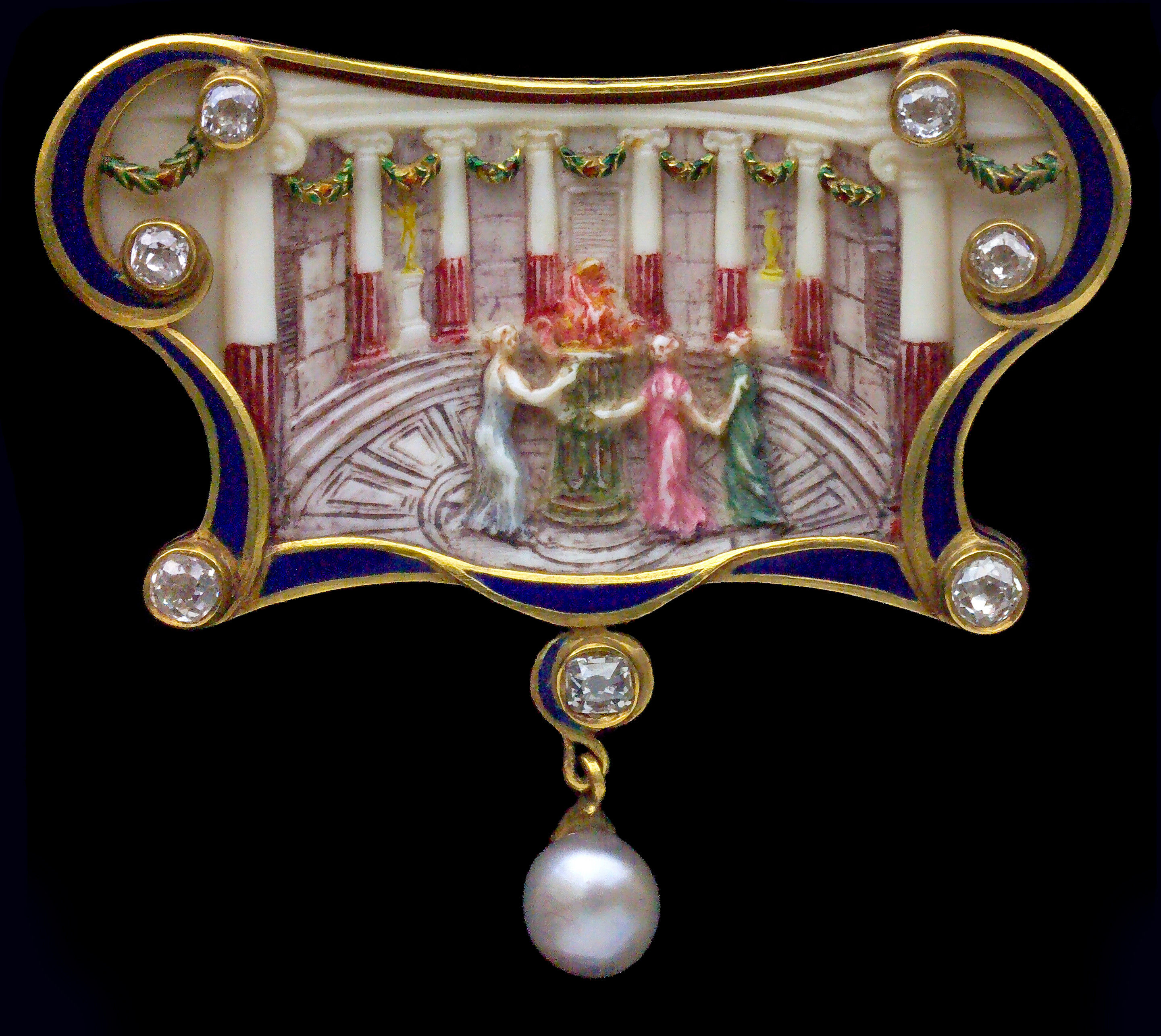 The Vestal Virgins. An important classical brooch/pendant in the style of the antique