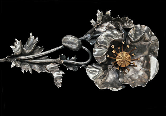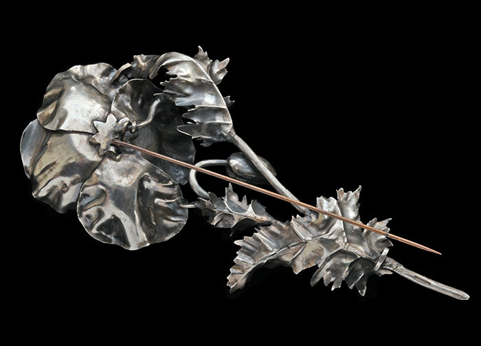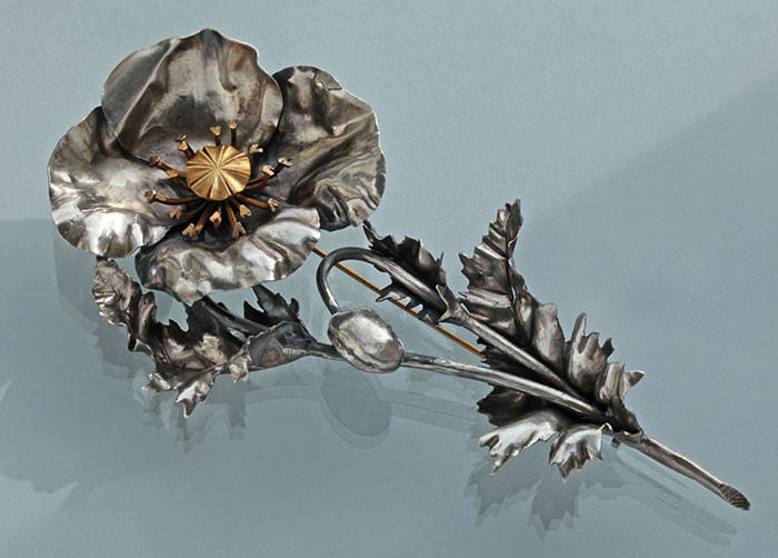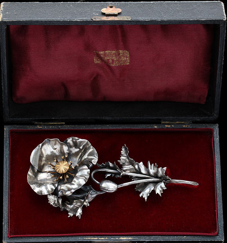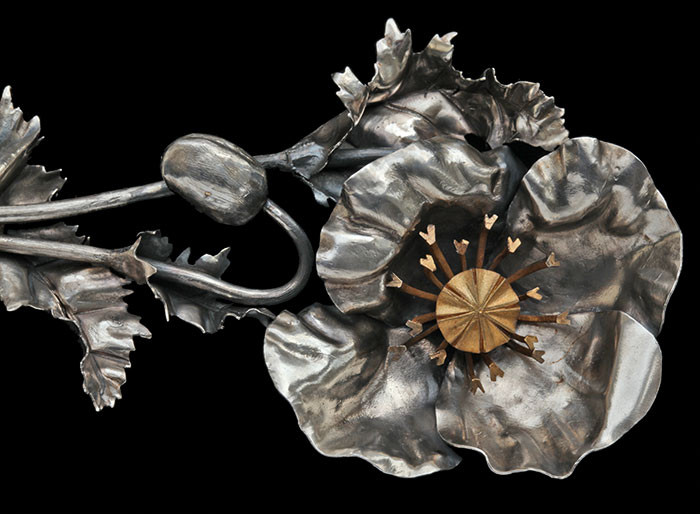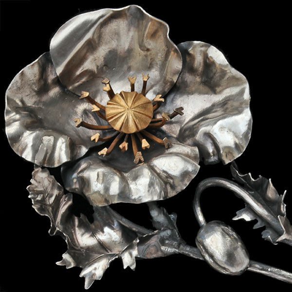 The poppy was very popular with the Nancy School of Naturalism as propounded by Gallé & Majorelle etc. A good example, with sensitively handwrought petals & leaves