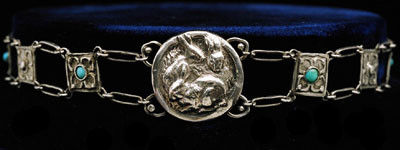The work of Bertha Lillian Goff epitomises the aims of the Arts & Crafts Movement. She was a talented artist in many fields: painter, sculptor, jeweller, enameller & silversmith. Bertha Goff was awarded a silver medal at the National Competition c.1902. She studied at the Sir John Cass Technical Institute winning prizes for enamelling in 1906-7.