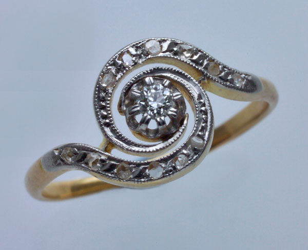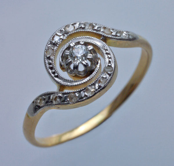 12 rose cut diamonds 0.12 cts approx surrounding central old cut diamond 0.10 cts approx