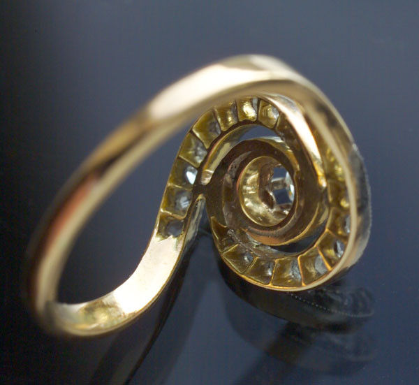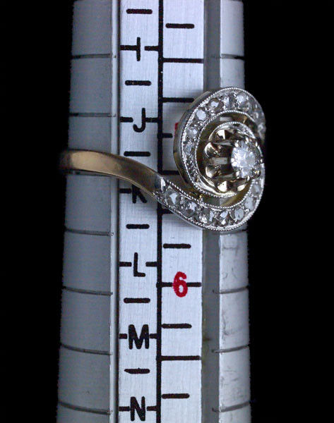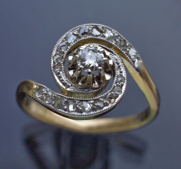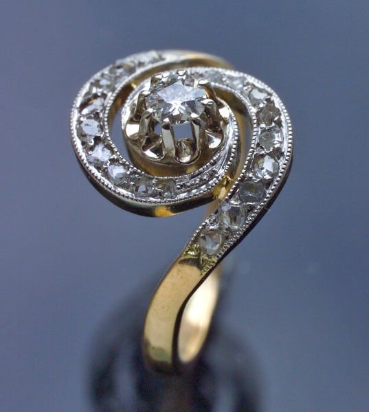 Old cut diamond 0.15 cts approx surrounded by 18 rose cuts 0.30 cts approx