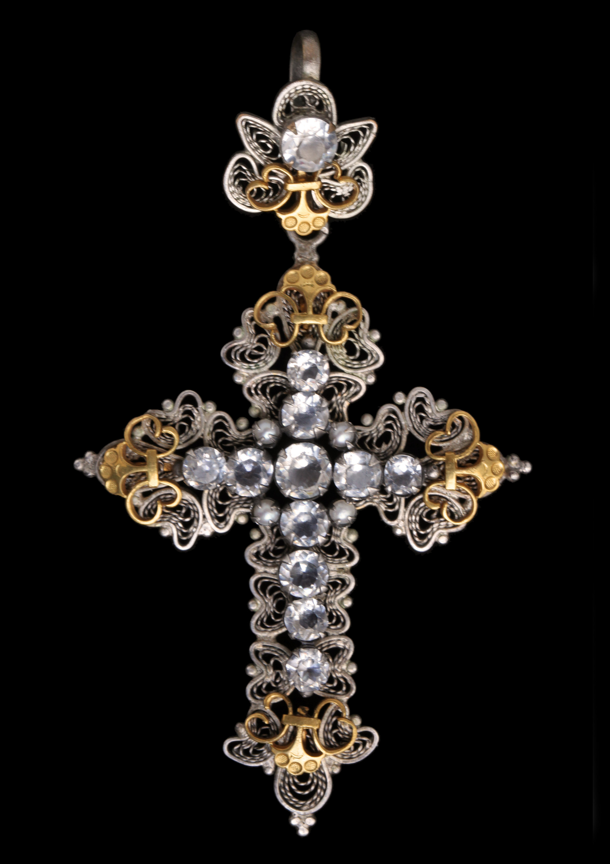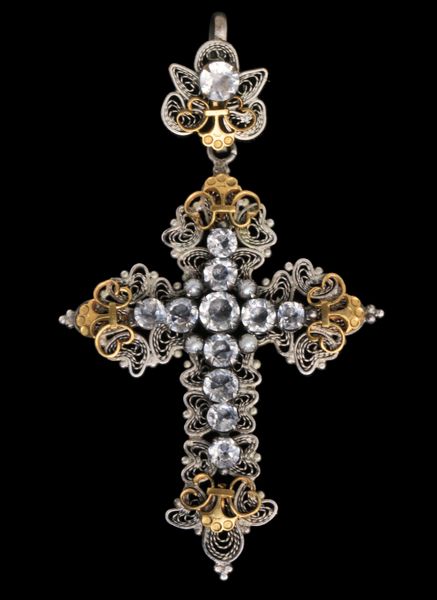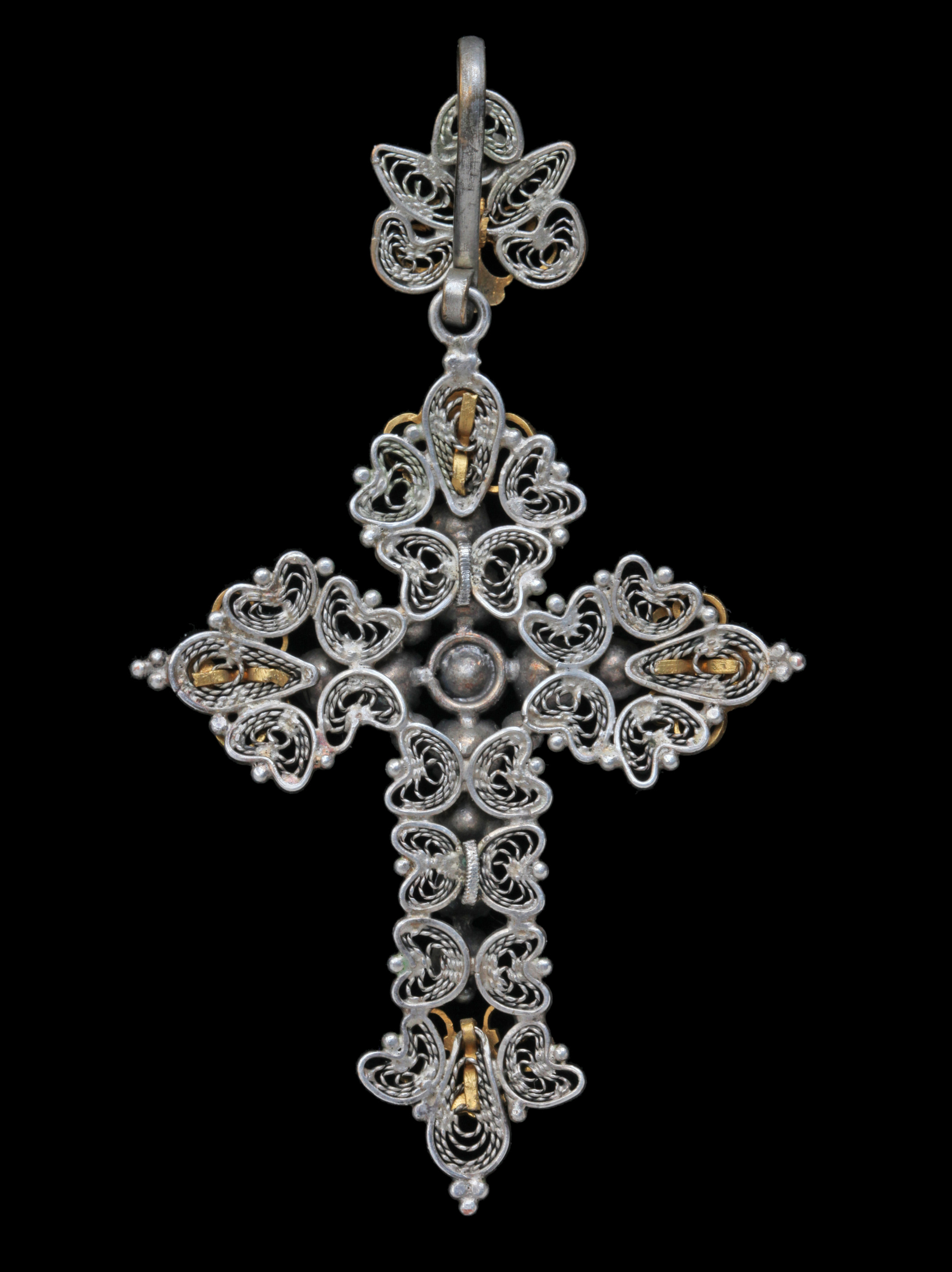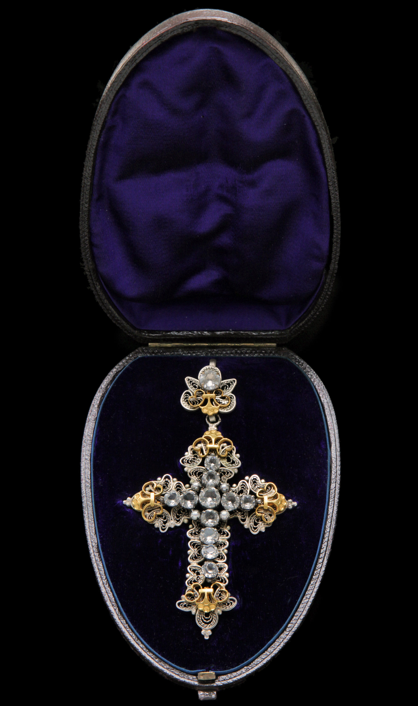 Victorian filigree cross, probably Italian, original fitted case.