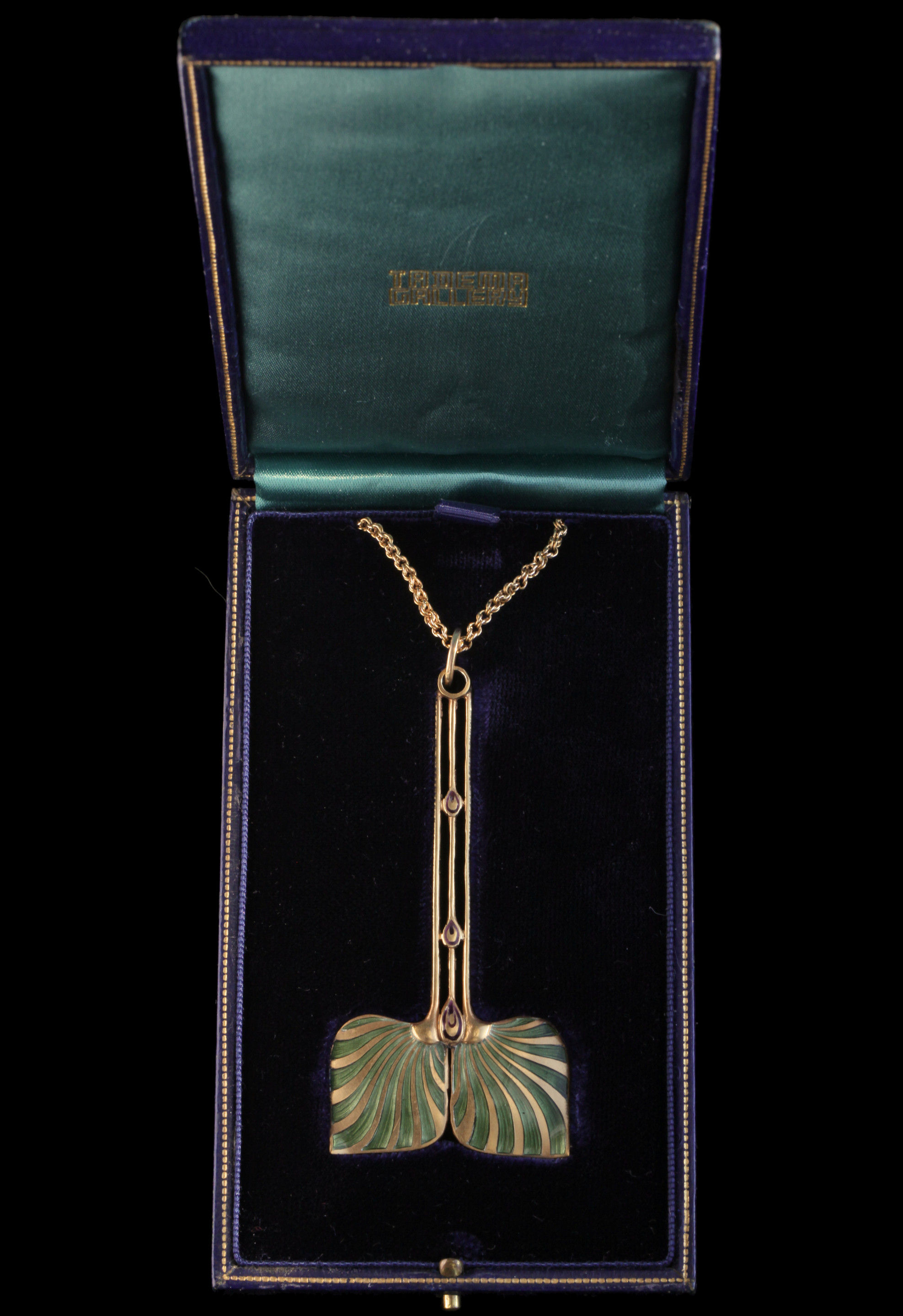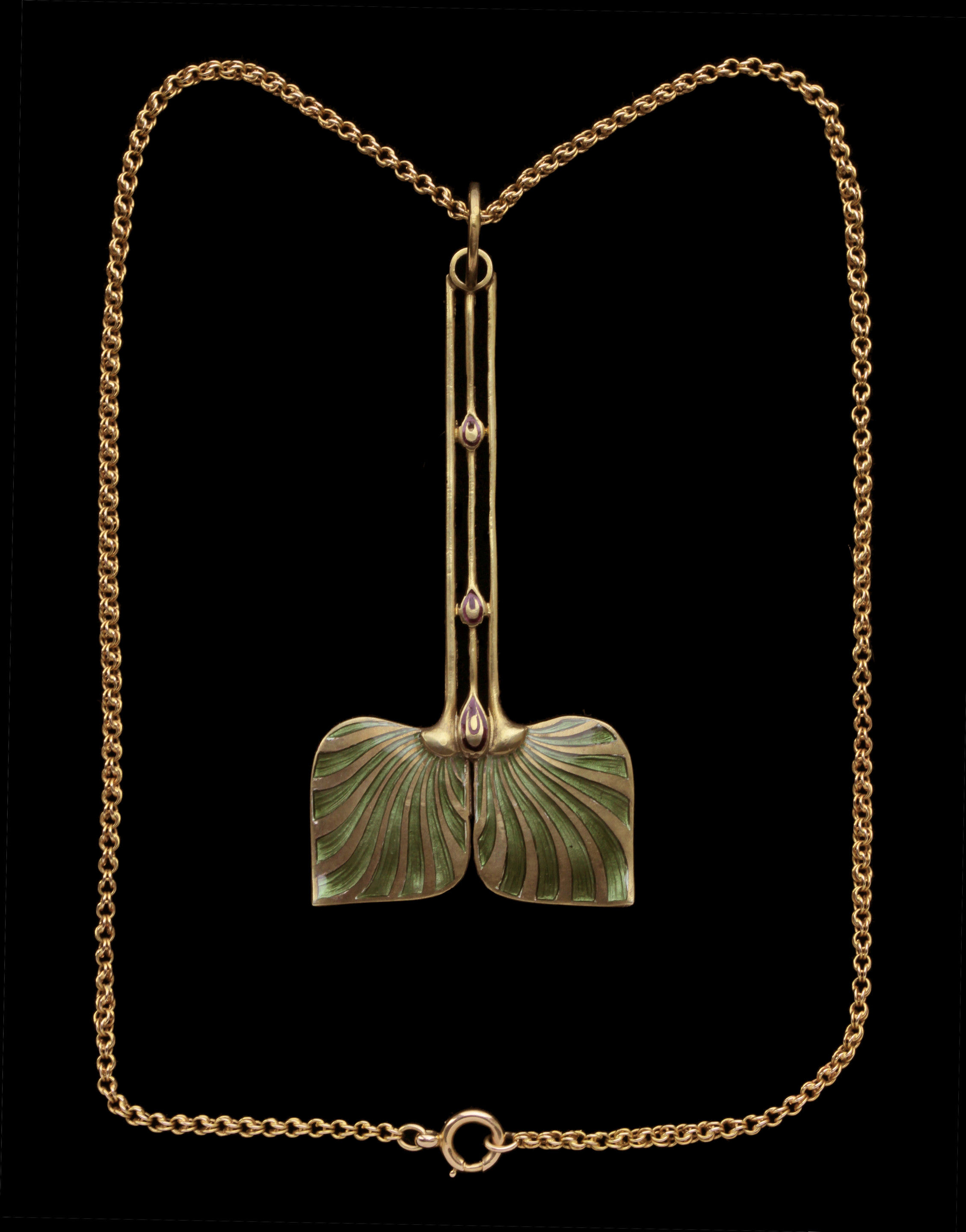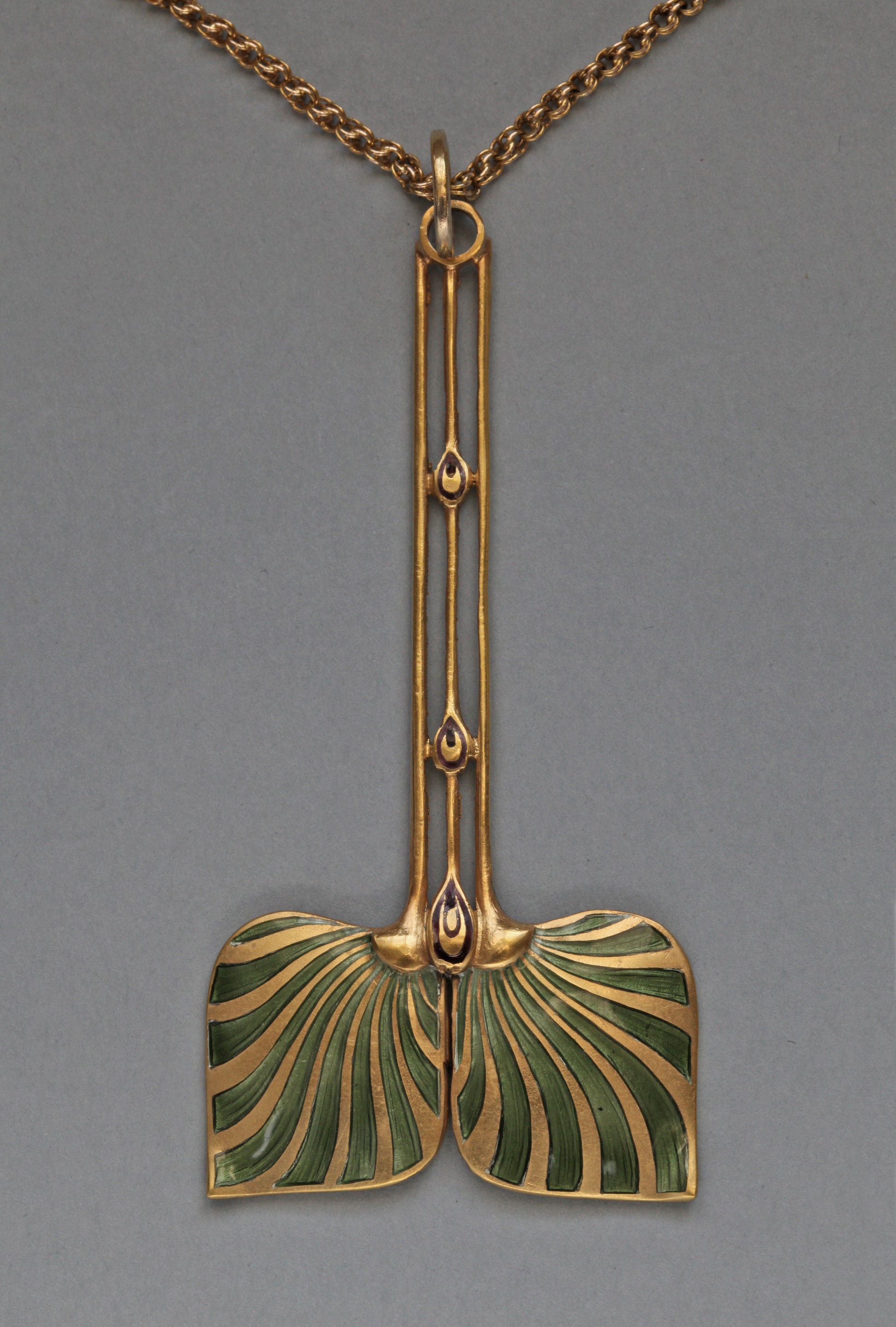 Beautiful Secessionist pendant by Josef Maria Auchentaller, in gilded silver & enamel. Executed by Georg Anton Scheid, Vienna.